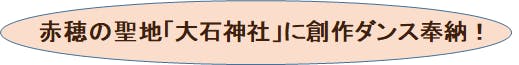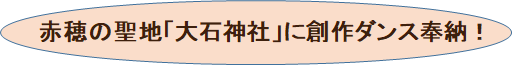 赤穂市のストリートダンスRAM.DANCE STUDIOの宮本先生とダンスユニット”シーク”による創作ダンスを大石神社に奉納させていただき、12月の義士祭において大石神社で皆様にお披露目しようと考えています。
