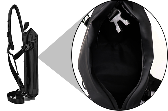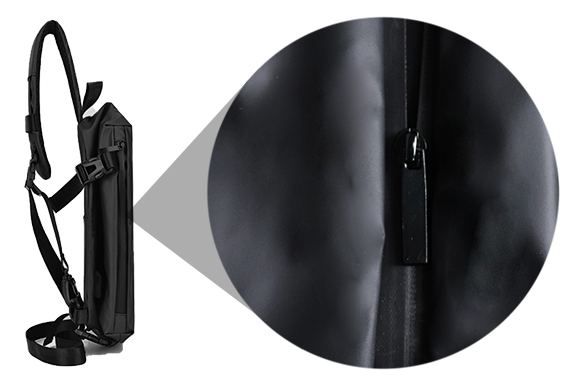 中身に水などが浸入しないよう、ファスナーも完全防水デザインを採用。