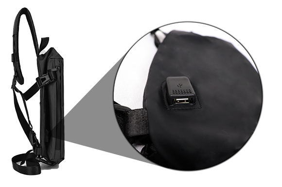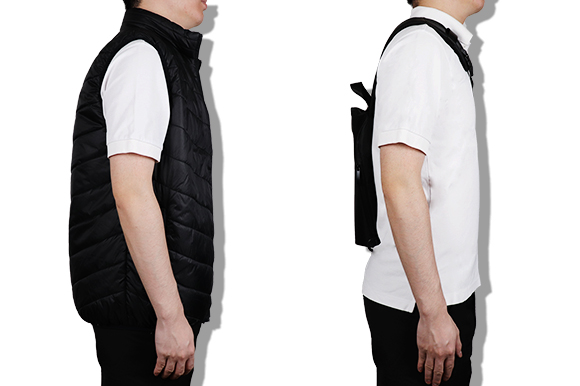 INVIRU ultraもINVIRUシリーズの特徴、コートの中に隠せるデザインになっています。人ごみの中でも邪魔にならないように設計されています。