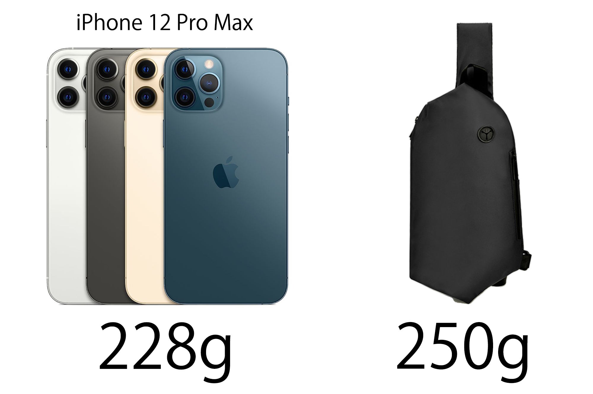 本体の重さはわずか250g。スマホケースをつけたiPhone 12 Pro Maxの重さに相当します。