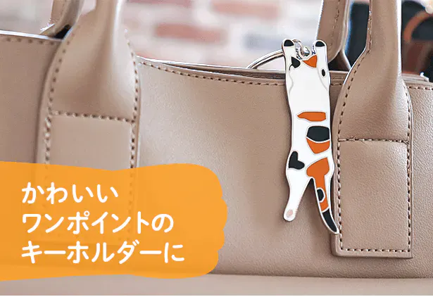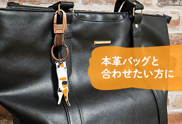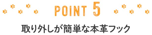 取り外しがしやすい本革フックにネコちゃんをぶら下げて一緒にお出かけください。