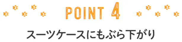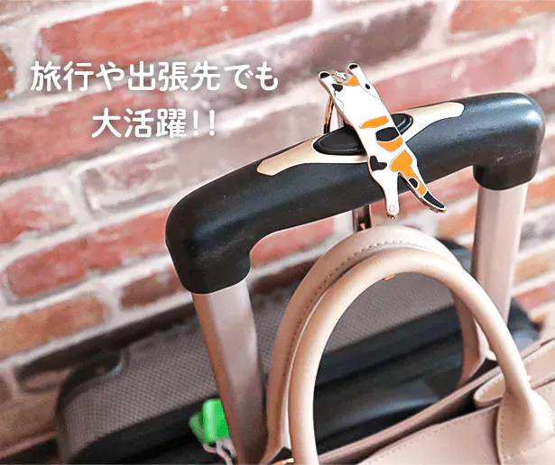 スーツケースのハンドルに寝そべれば、ハンドバッグやエコバッグを引っ掛けてくれます。