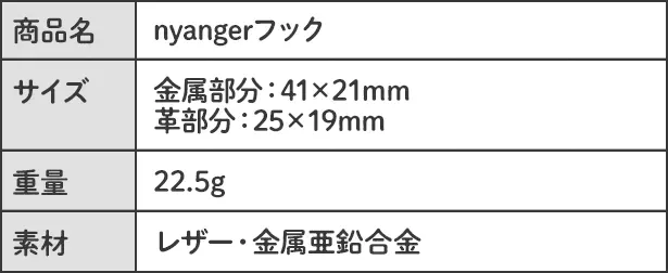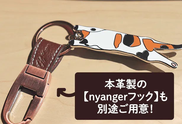 今回はネコちゃんだけでなく、本革のnyangerフックも別途ご用意しました。