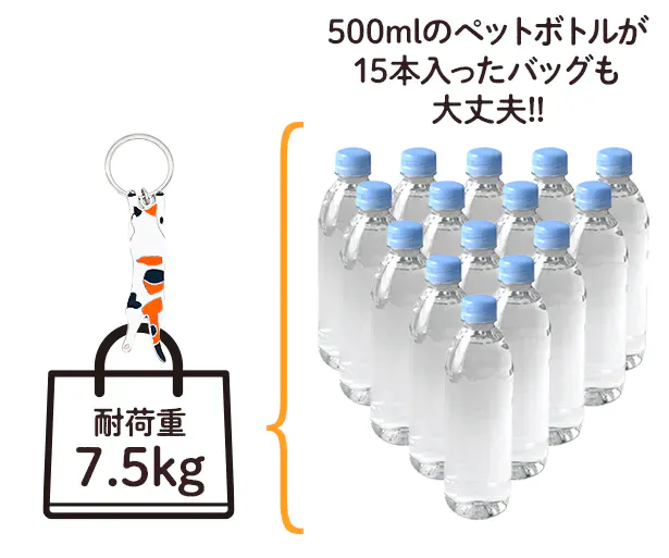 500mlのペットボトルが15本入ったバッグをぶら下げても大丈夫!