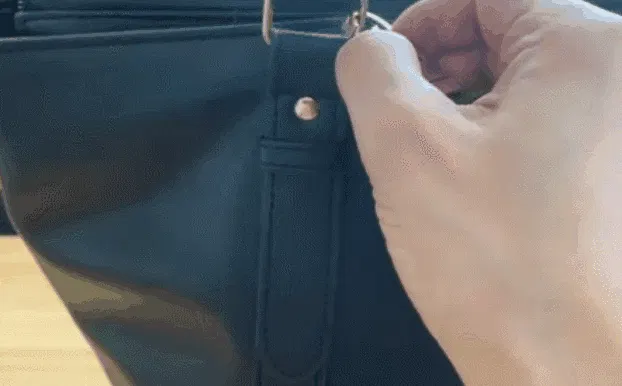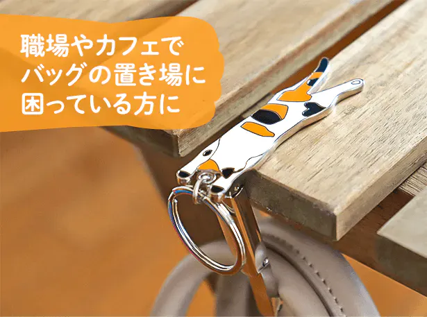 nyanger mikeはカバンを置くスペースがない場所でもテーブルやイスに引っ掛けるだけ。