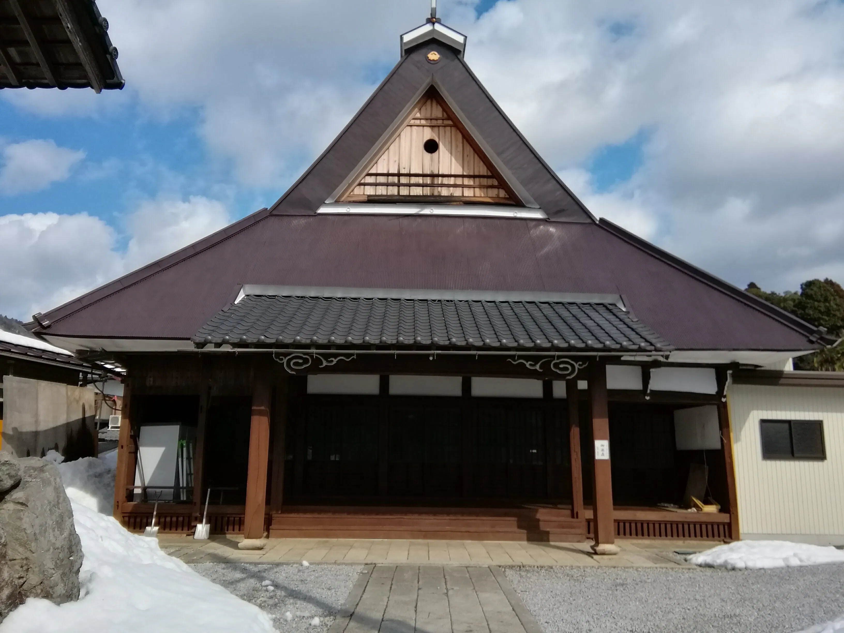 保存会の話では、当時の天台宗の建て方で、屋根が左右にふかれているのが特徴だということでした。