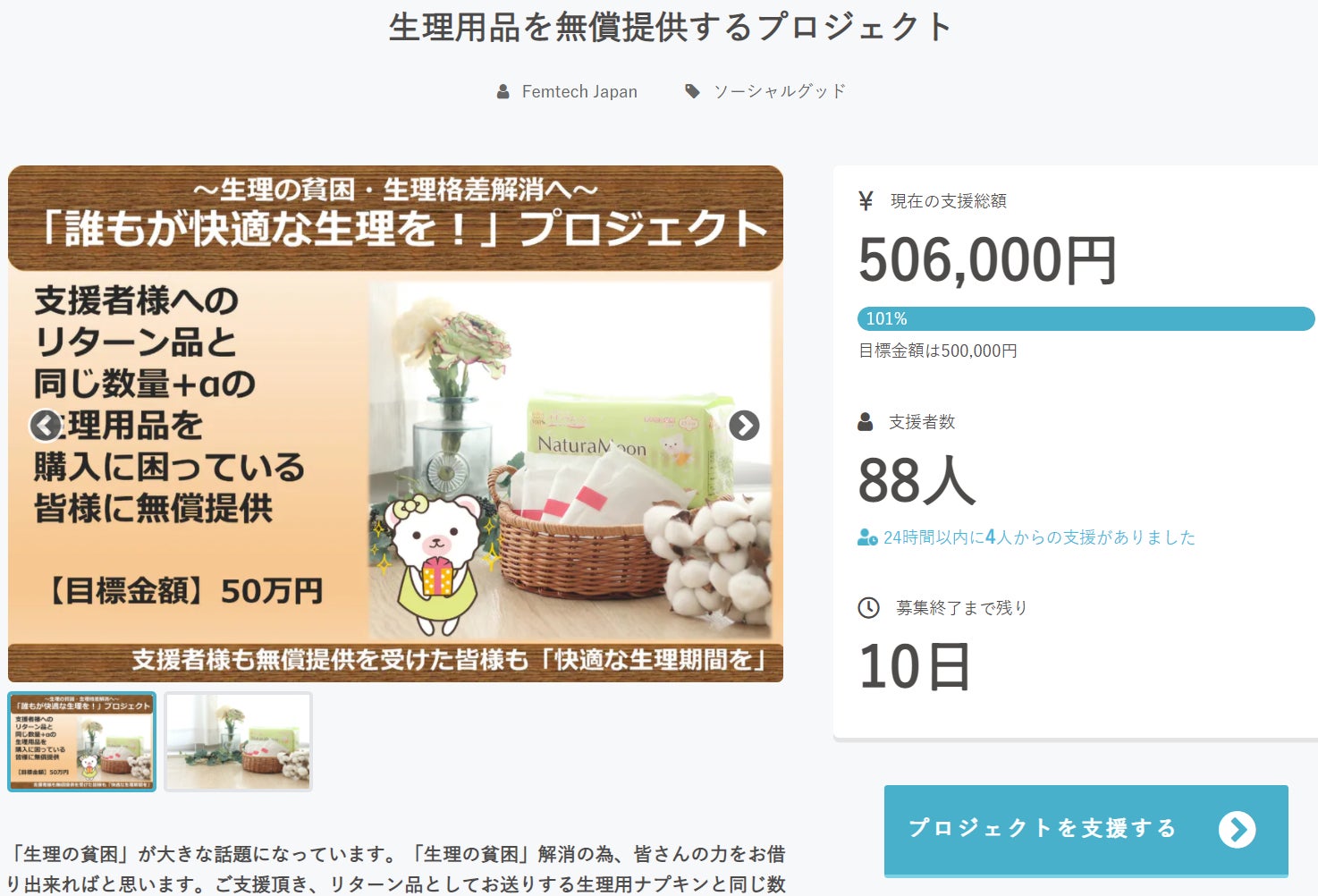 【生理用品無償提供へ向けたクラウドファンディング】