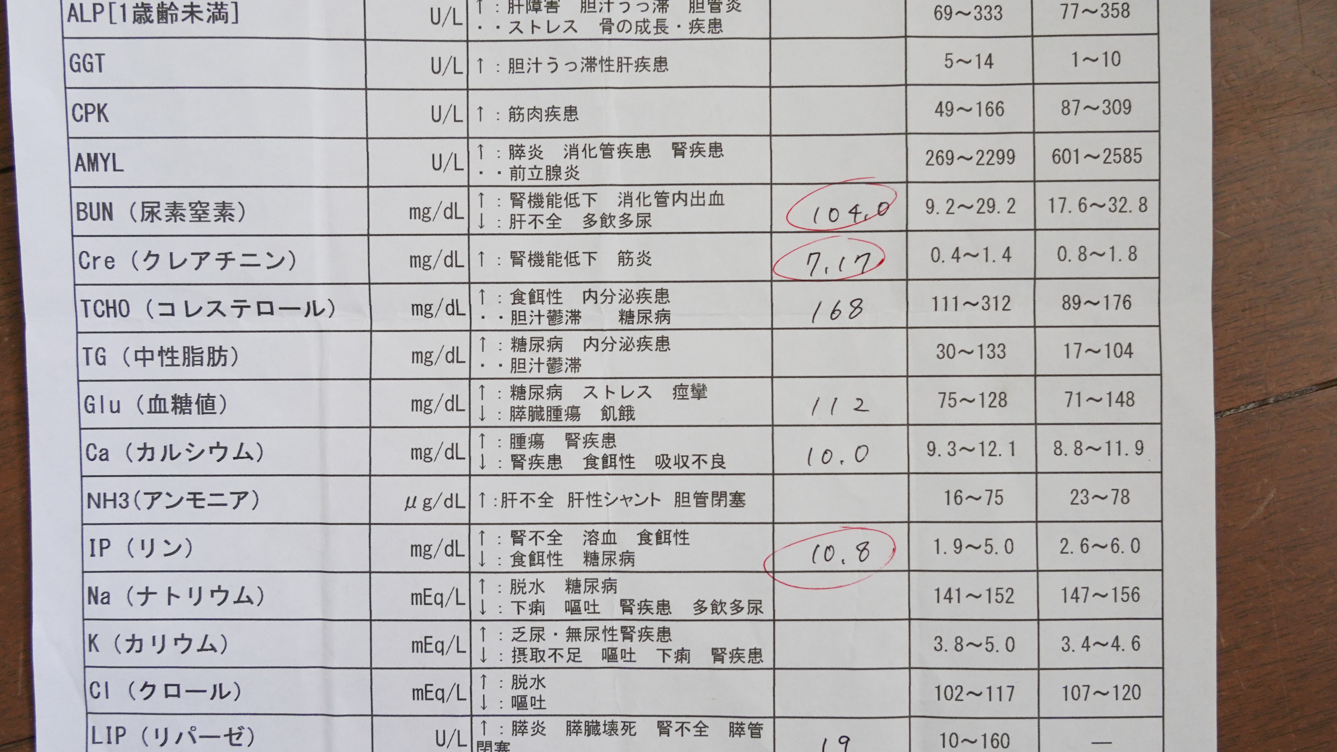 入院でご飯が食べられるまで回復したので自宅療養になり、腎機能は回復することが無いので、少しでもななちゃんが辛いのを和らげる為、検査数値を見ながら週に2回〜5回の点滴や薬での治療していくことになりました。