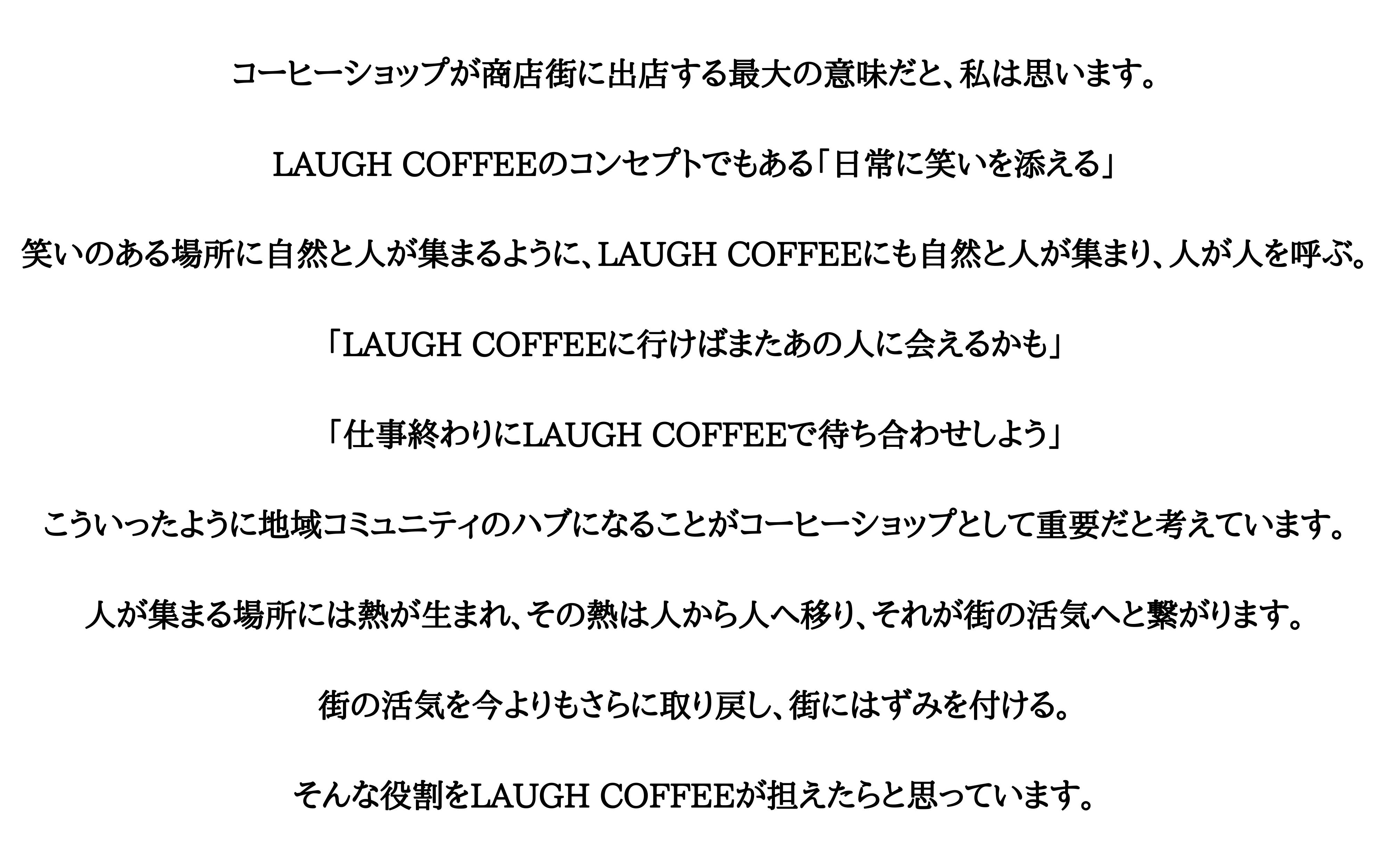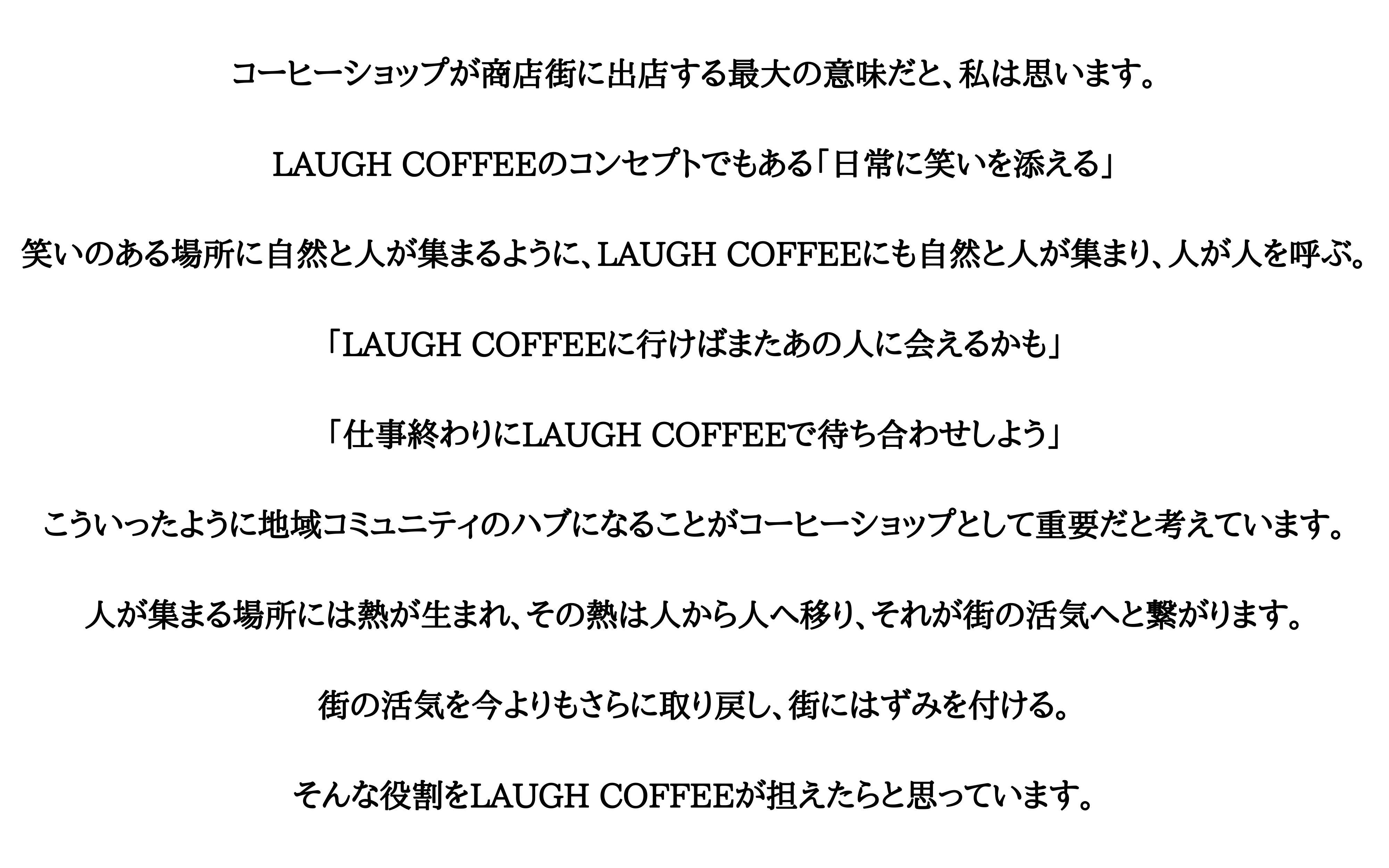 LAUGH COFFEE はこれまでたくさんのお客様から応援して頂き、実店舗出店へと辿り着くことが出来ました。