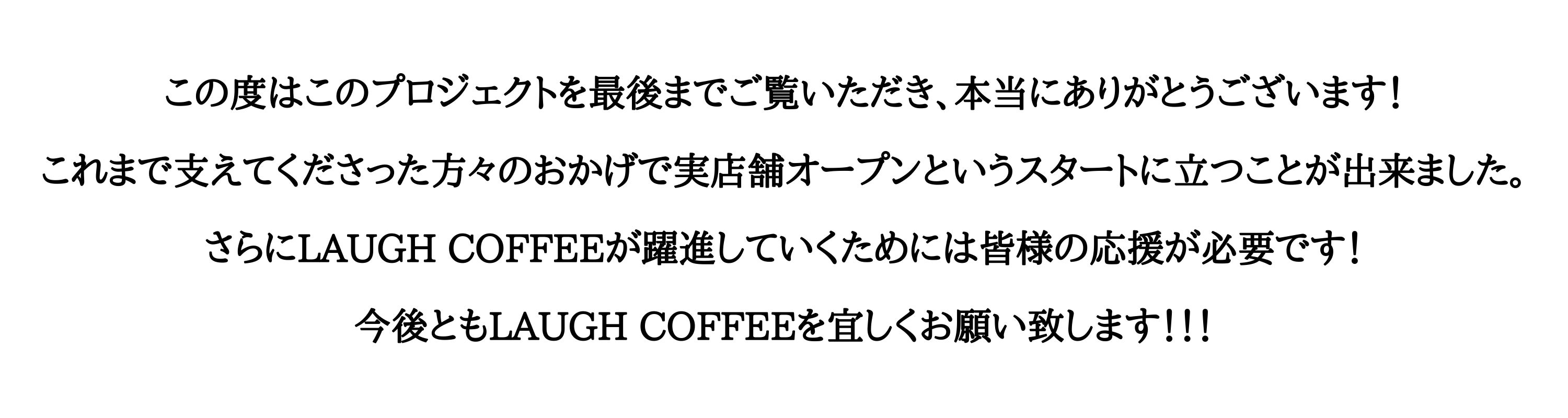 なお、本プロジェクトが、お客様がお得にサービスを利用できるとともに、LAUGH COFFEE が今後、営業を続けていくための設備資金・運転資金とし、両者にとってプラスな関係になれたらと思います。