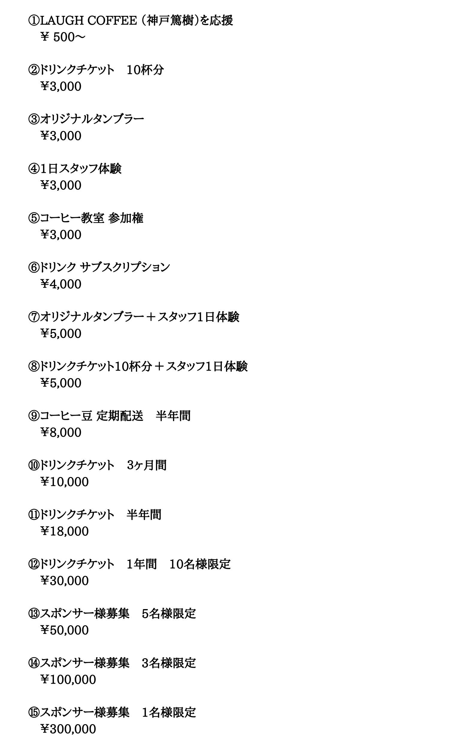 本プロジェクトでは、LAUGH COFFEEを応援してくださるお客様が、よりお得に当店を利用できるリターンをご用意いたしました。