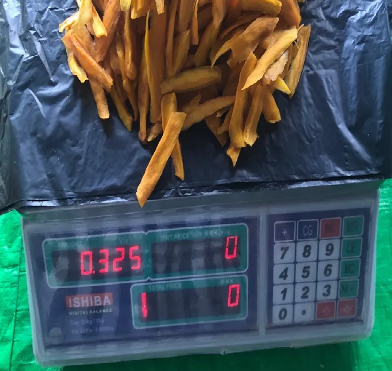 ようやく国際産直用のセインタロン ドライマンゴーの試作品ができました。味と香りともに最高の出来上がりです。