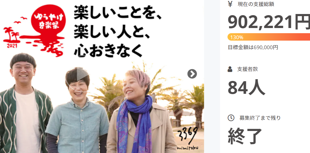 こんにちは! 昨日、快晴の青空の下、無事にゆうやけ音楽祭2021開催することが出来ました! 青い空と海、太陽の傾きに沿うように、素晴らしい出演者の方々の音楽、ダンスがゆったりと伸び伸び繰り広げられてゆく時間。それが風に乗って響く芝生広場で憩う人々の笑顔。 美味しいフードやドリンク、素敵なワークショップ、練り歩くアコーディオンの音色。 もうすべてが、「たのしいい!!!!」宝物のような1日でした。 お客さん、演者、出店の方々は勿論、朝から日暮れまで、準備や撤収を手伝ってくれた方々、何時間にも及ぶ配信も、途切れることなく成功できたこと、それを画面の向こうで見てくださっていた方々、色んなワガママに迅速に対応してくださった音響スタッフの方々、数え上げればきりがないほど、関わってくださったみなさんに感謝です。 クラウドファンディングも130%達成できたこと、当日の沢山の投げ銭を頂けたことで、当初の予定よりオーバーしていた予算も無事に足りて、なんといっても我々team耳六の3人もギャランティをいただくことが出来そうです!やったー! クラウドファンディングの基本リターンである「全編配信」のようすは、引き続きアーカイブご覧になれますので、見逃した方はぜひ映像で当日の様子をお楽しみください。(基本1カメと言ってましたが、結局2,3台のカメラで色々スイッチして配信できました!) 作曲、出張ライヴ、映像制作のリターンをお申し込みくださった方には、これから順次ご連絡してゆきますので、お待ちくださいね!素敵な作品を一緒に作り上げてゆきましょう☆彡 「楽しいことを、楽しい人と、心おきなく。」 これからもこれをモットーに耳六おもしろいことどんどんチャレンジしてゆきます! また遊びましょう 最後になりましたが、関わってくださったみなさん、ほんとうにありがとうございました!! team耳六より
