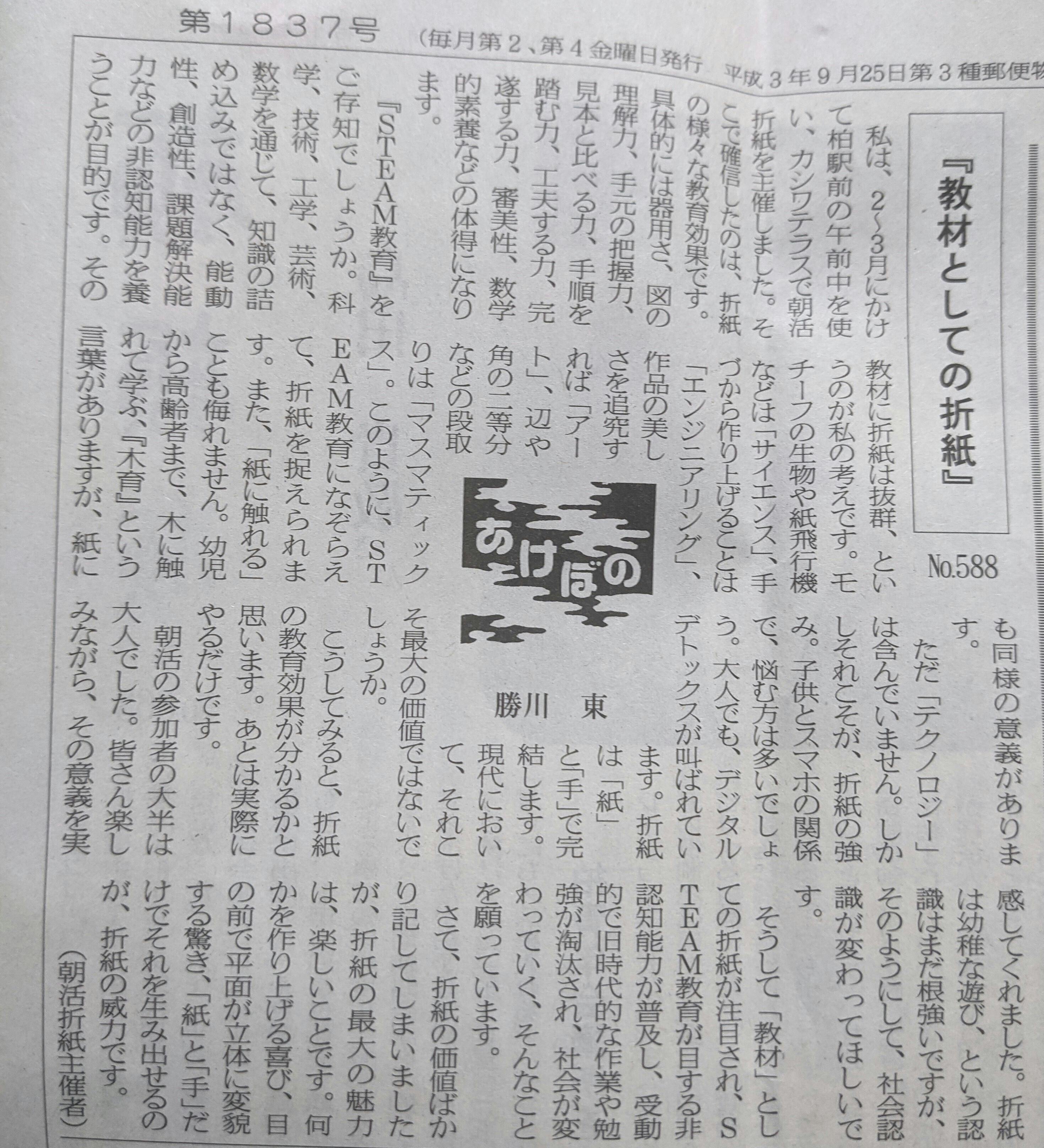 写真は、折紙の教育効果についての考えを、寄稿したものです