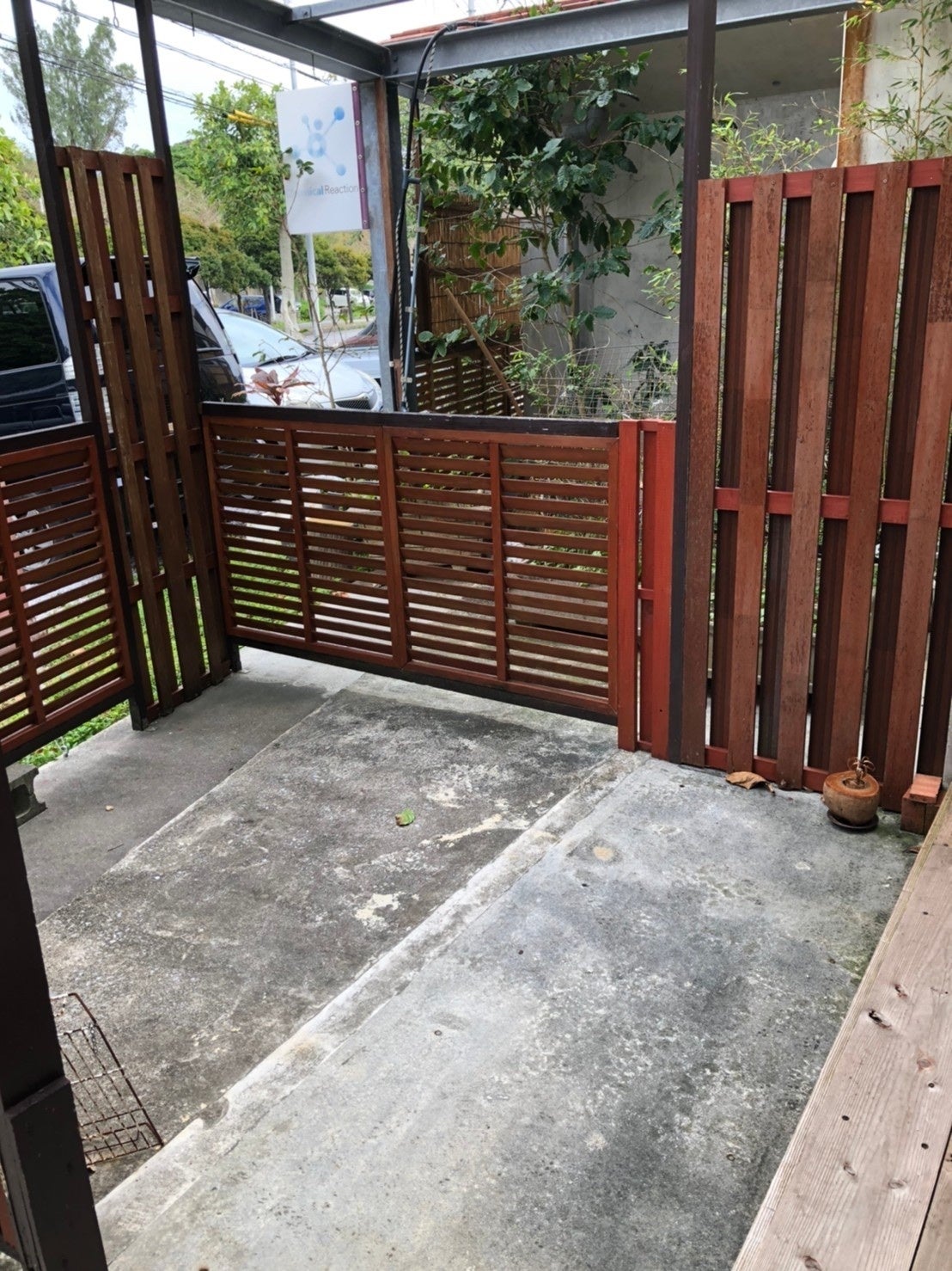 虹心カフェは駐車場以外にも入口前に広いスペースがあるのですが、屋根が無く敷地内に仕切りがあったりとせっかくのスペースを活用できていません。何とかしたいと思いつつも私一人の力ではどうにもならない状態でした。