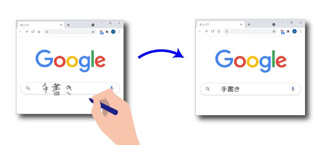 Webサイトと独立した別ウィンドウの入力フィールドに手書きするのではなく、Webサイトの入力フィールドに直接手書きすることができます。