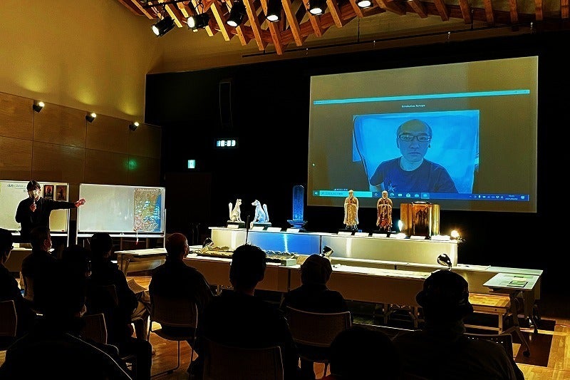 修復中の文化財については、残念ながらリモート参加になってしまいましたが、(株)京都科学の修復家・那須川善男さんがその過程について解説しました。