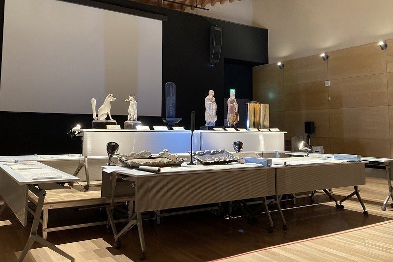 おしゃっちの多目的にホールに、豪商・前川善兵衛家に縁のある文化財が展示されました。