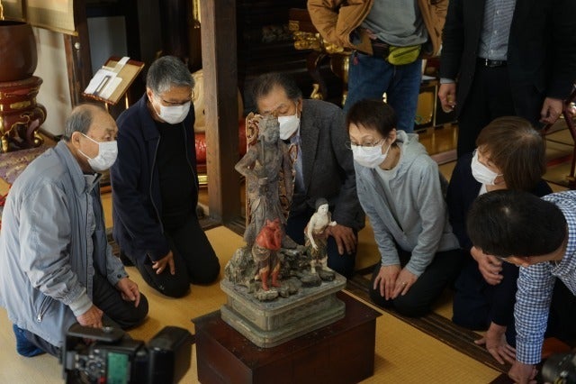 本プロジェクトで対象としている不動明王三尊像の修復が完成しまして、昨日5月4日、約1年ぶりに大槌町に像が帰ってきました。
