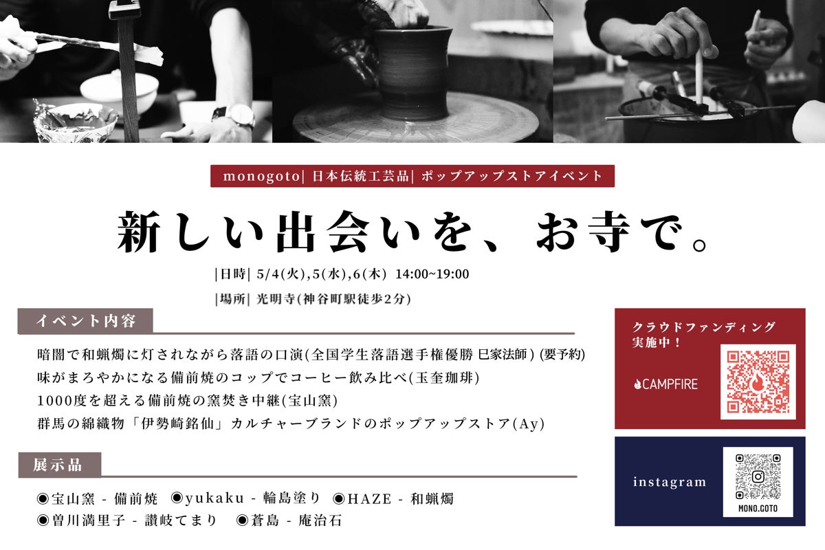 5/4(火・祝日)・5/5(水・祝日)・5/6(木・平日)に東京港区のお寺「光明寺」さんで開催予定のイベント「新しい出会いを、お寺で。」についてのお知らせです。