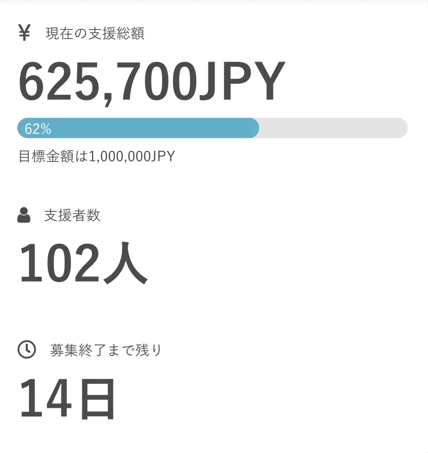 クラファン終了まで残り2週間となり、いよいよ終盤が近づいてきました!引き続き応援のほど宜しくお願い致します。