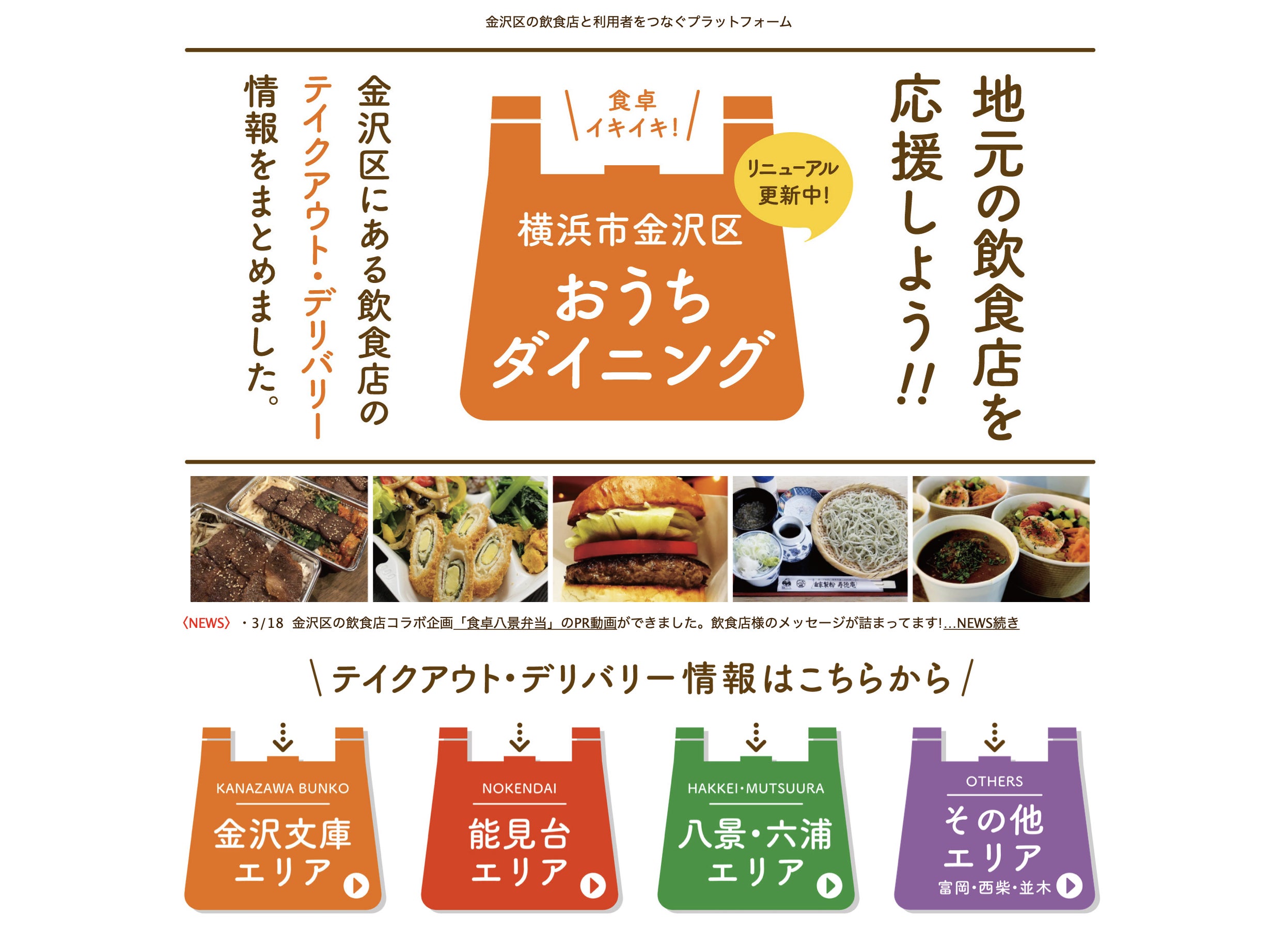 コロナ禍における飲食店応援、地域住民のお役立ちツールとして、双方を結びつけるプラットフォームになるよう2020年4月の緊急事態宣言時に立ち上げたテイクアウト・デリバリー情報のポータルサイトです。飲食店が利用できる店頭ツール各種のデザインをダウンロード提供したり、SNSでユーザー目線の食レポを投稿しながら有志で制作・運営、地元応援を続けてきました。