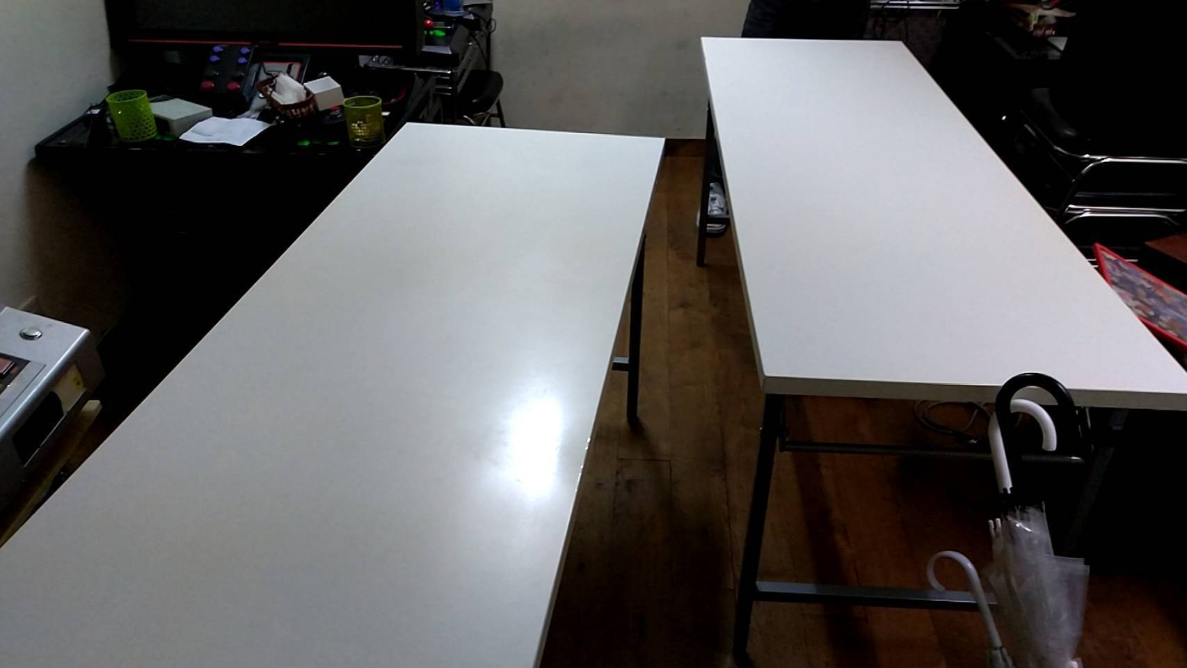 頂いた机を配置しつつ、配線を整理していきました。可能であれば5組が同時に遊べるようになレイアウトを組めるように考えていきます。