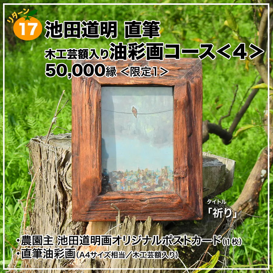 17■池田道明直筆 木工芸額入り油絵コース<4>/50,000円 <限定1>