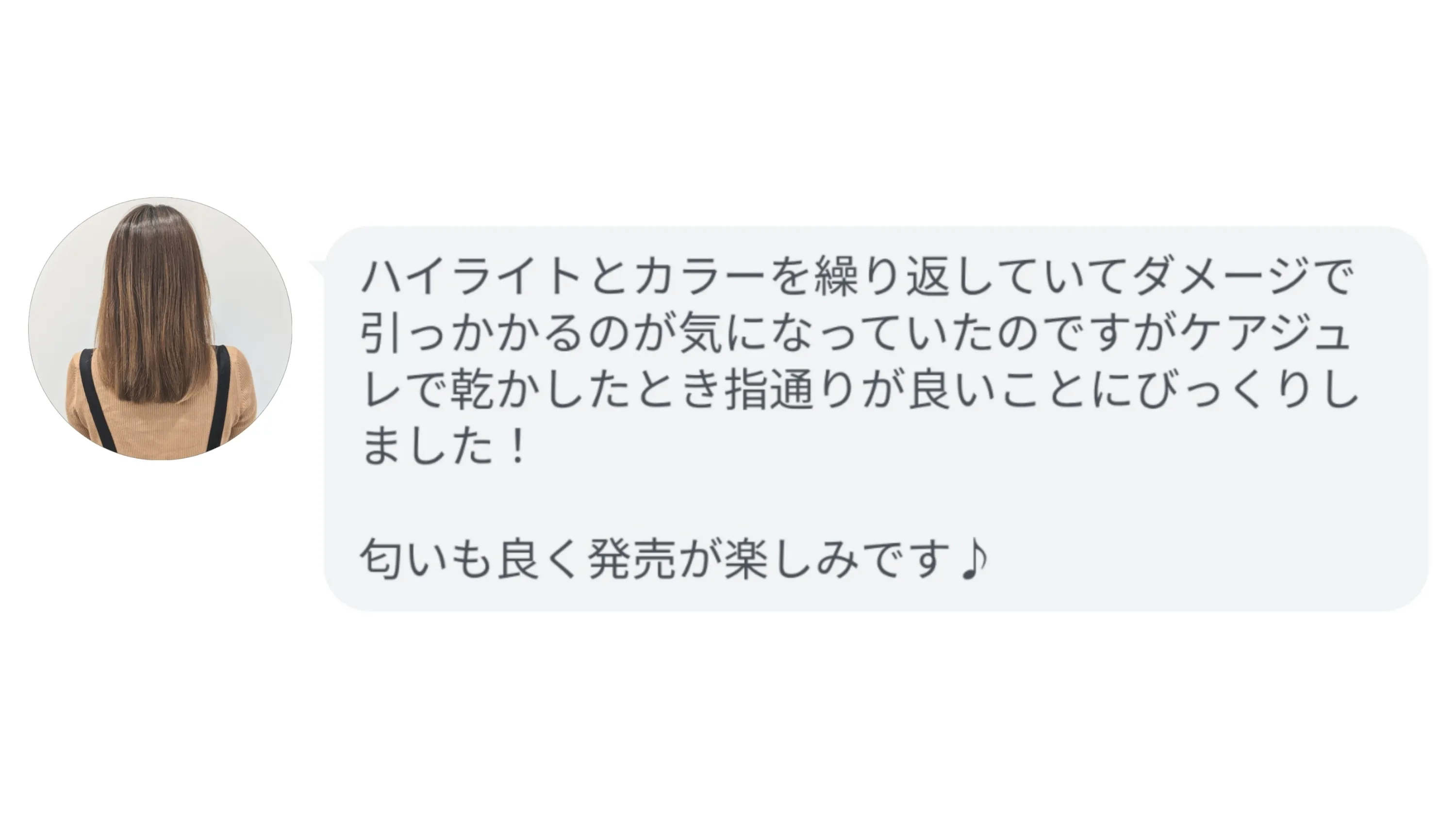 ベタつきや過度なコーティングはせず毛髪補修成分を効率よく馴染ませることで柔らかさ、まとまり、サラサラ感と理想の質感へと導きます