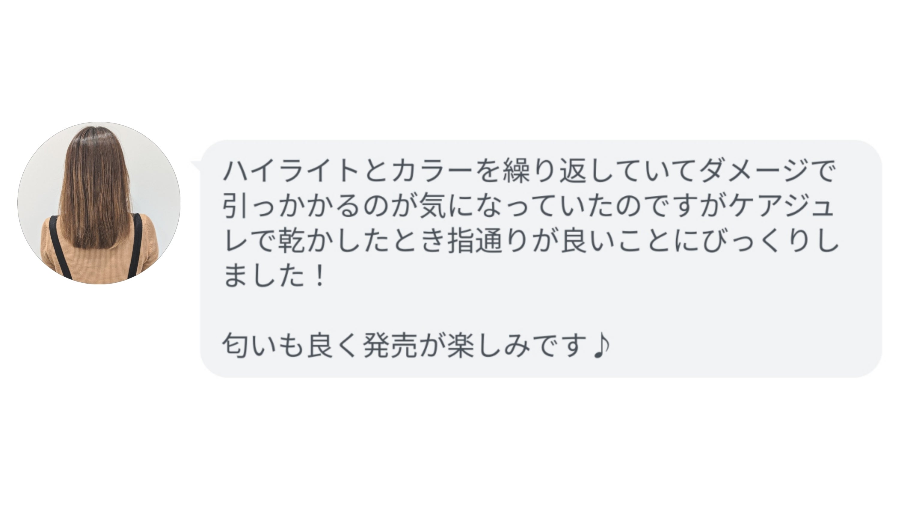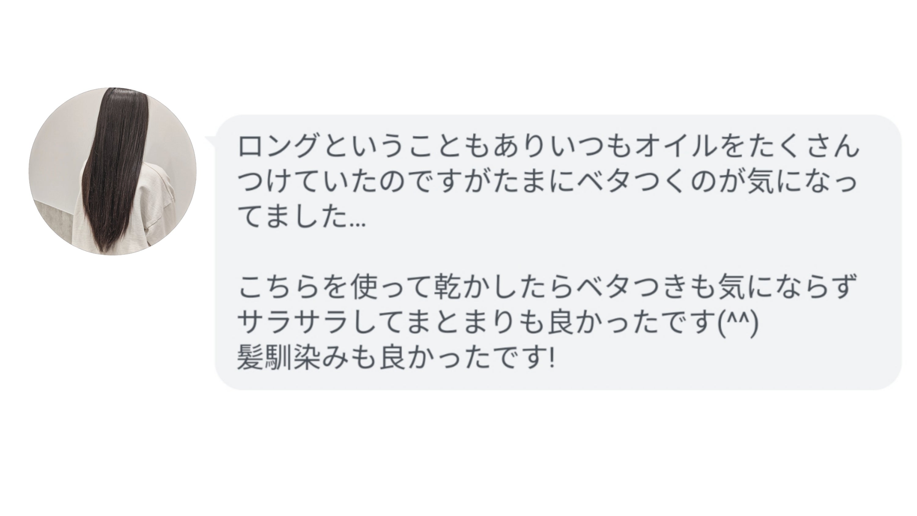 ベタつきや過度なコーティングはせず毛髪補修成分を効率よく馴染ませることで柔らかさ、まとまり、サラサラ感と理想の質感へと導きます