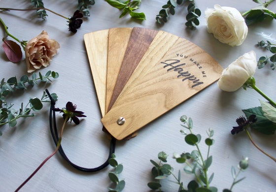 家具職人さんの作る美しい木製扇子に文字とイラストを描き、ウッドバーニングで完成させます!