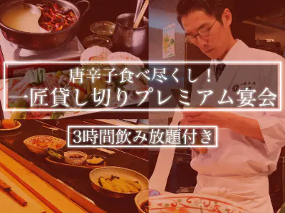 【リターン12】 【唐辛子食べ尽くし!唐辛子研究家〈一匠〉のお店貸切プレミアム宴会】3時間飲み放題付特別フルコース♪