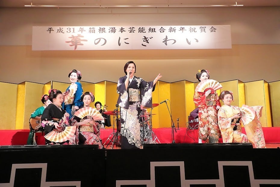 100名の芸者衆と一緒に新年をお祝いしましょう!毎年ご好評いただいております箱根芸者の新年会、フルコースのお料理と舞台では踊りや芸者バンドで大盛り上がり!スペシャルな時間をお過ごしください。 こちらの商品は招待券1枚で2名様をご招待致します。またご宿泊は箱根湯本富士屋ホテルとなります。