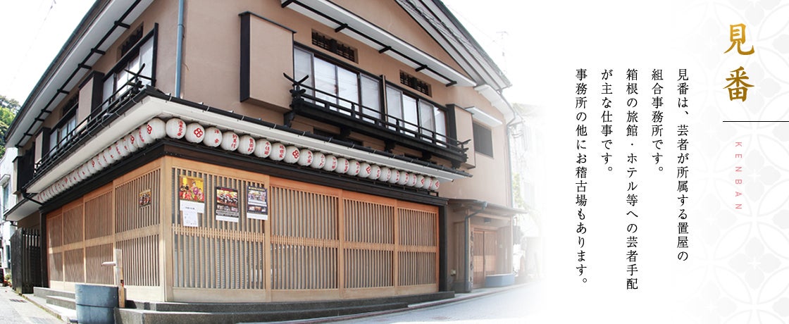 箱根湯本芸能組合 組合長の舘美喜子と申します。当組合は31軒の置屋に18歳から80歳まで総勢120名の芸者が所属しており、東京の奥座敷として有名な歴史ある花柳界です。私達は旅館さんに出向き宴席のおもてなしをするのが主なお仕事です。