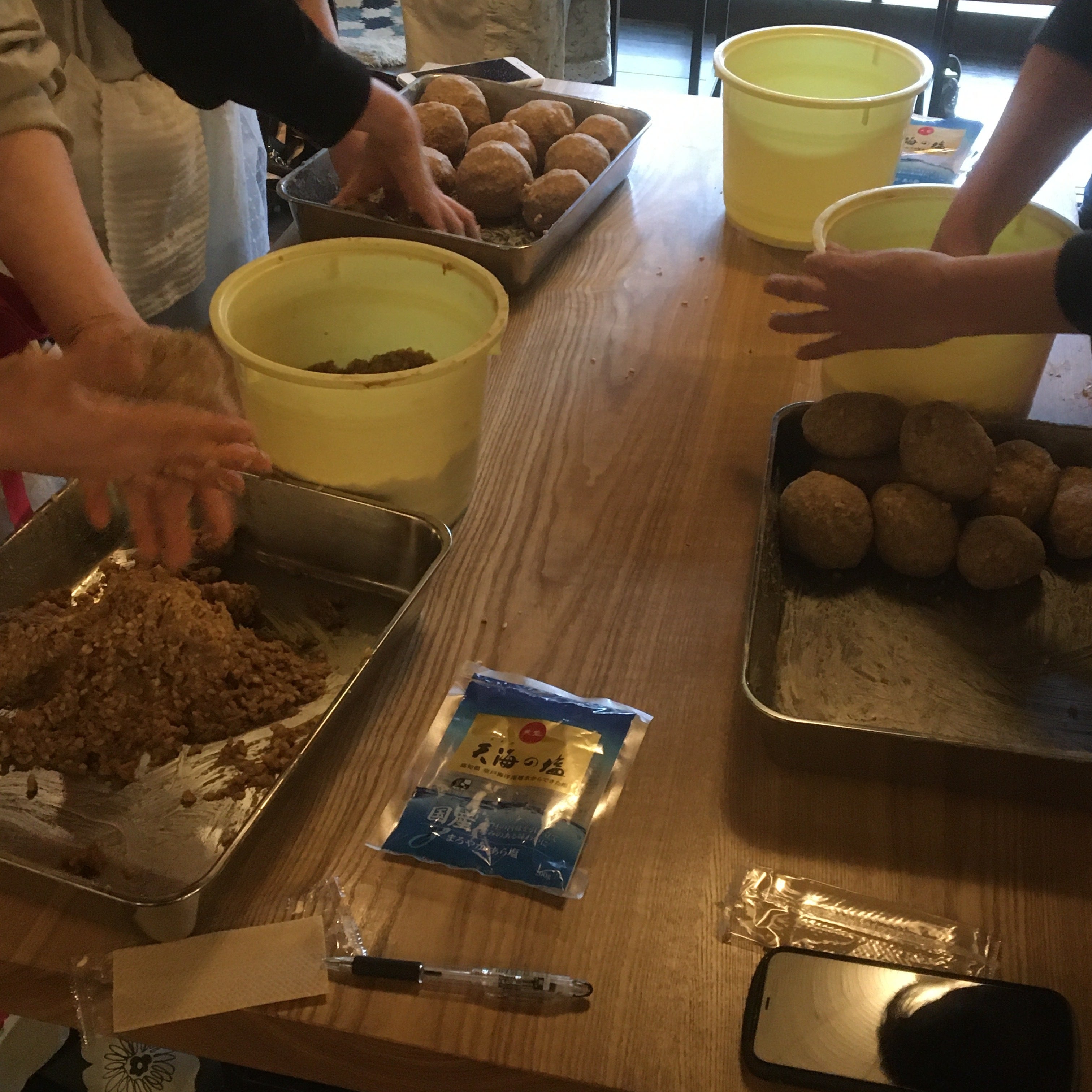 (店内での手前味噌作りワークショップ)