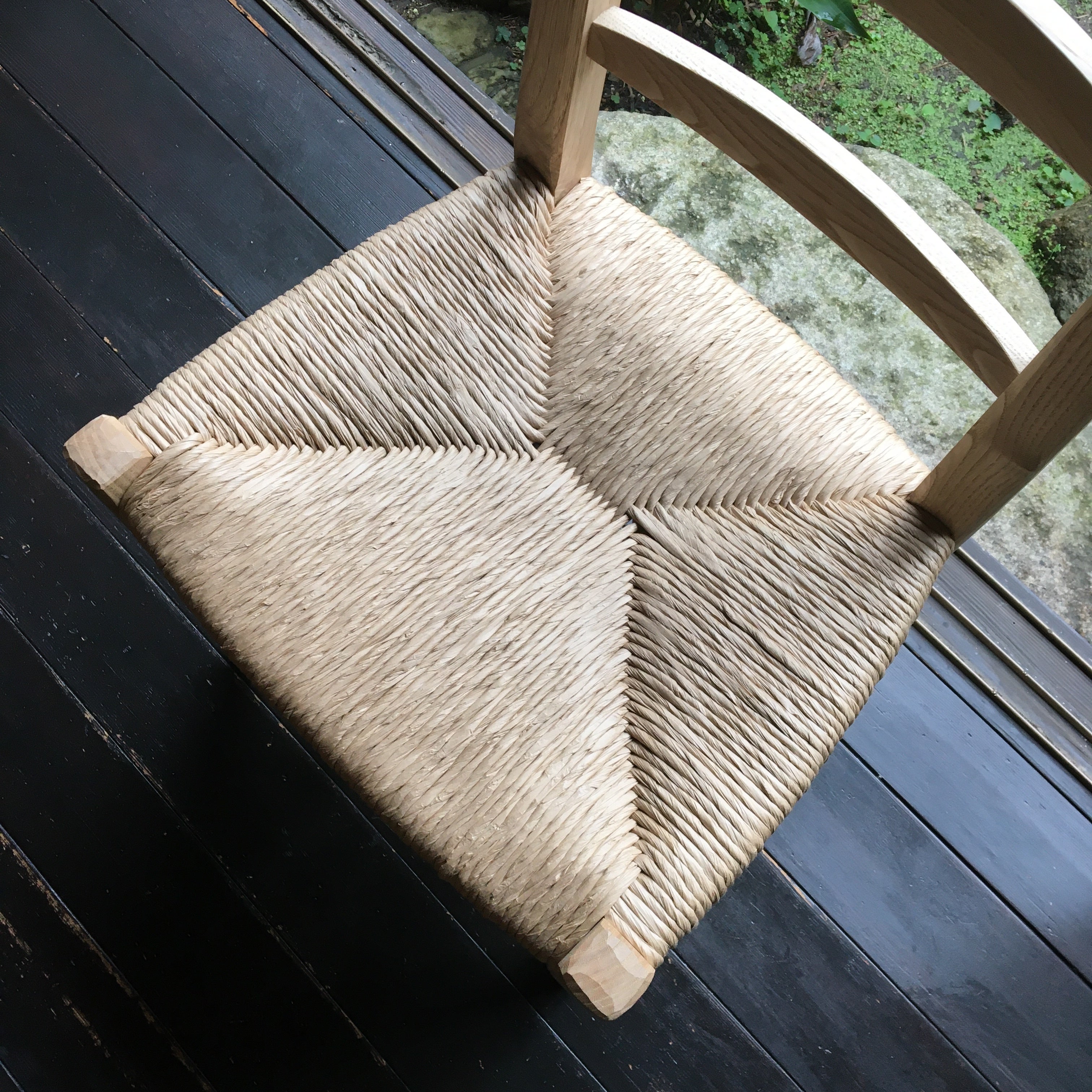 より心地よい空間作りのための今回のクラウドファンディングですが、皆様からご支援頂きました資金の使い道の一つはカウンターの椅子4脚の新調となります。民藝運動の先人達も愛した通称「ゴッホの椅子」に着想を得た座編みの椅子を丹波篠山の作り手・大橋力さんに制作依頼していましたが、本日、試作品をテマヒマにお持ち頂きました。既に完成度が高く修正は微調整レベルでとてもテンションが上がりました。皆様がこの椅子に座ってらっしゃる姿を想像すると心躍ります。