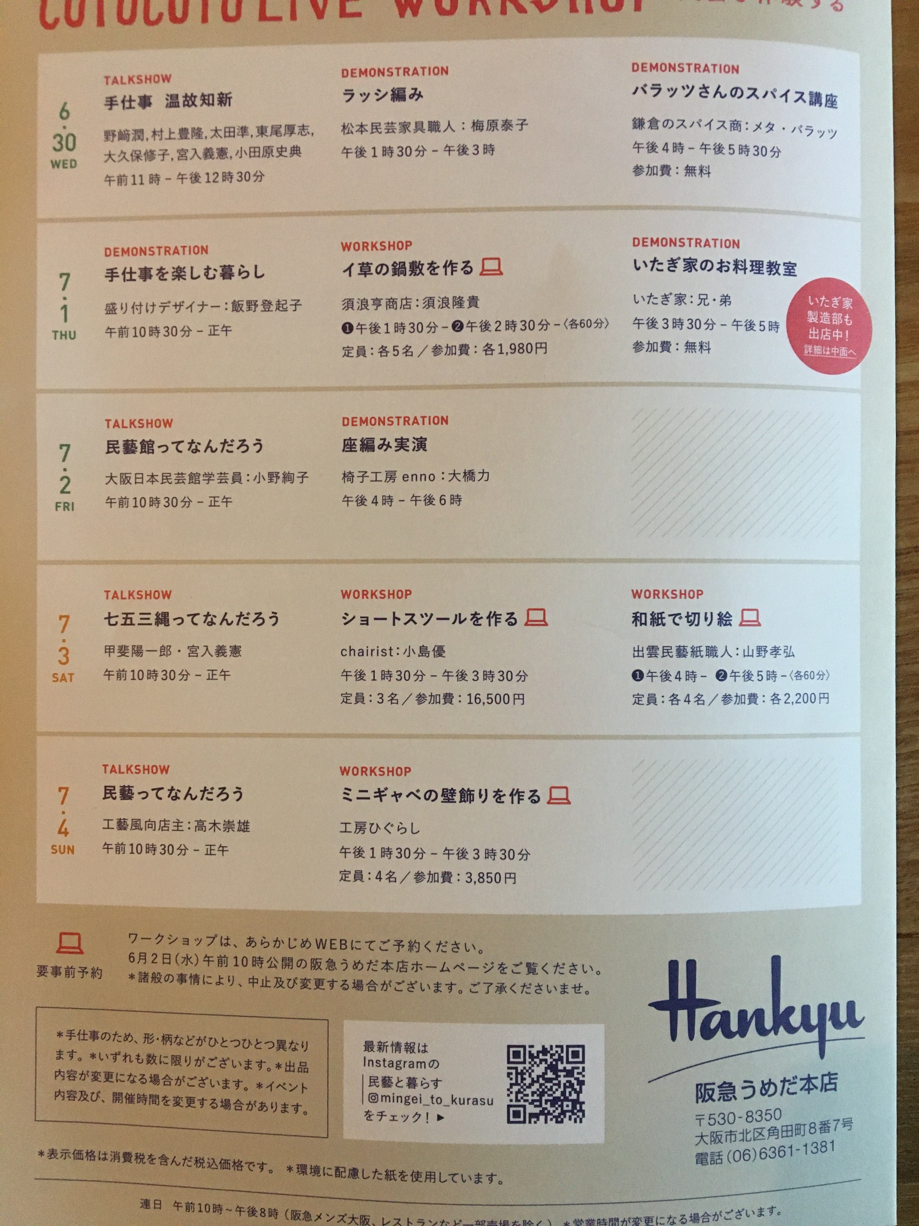 6/30~7/5の予定でテマヒマも出店する予定でした阪急百貨店梅田本店での催事「民藝と暮らす」の中止が決まりました。新型コロナウィルス感染拡大防止の一環としてのそのような判断となりました。結果として2年連続中止ということとなり、全国の配り手が集まるこのイベントを心待ちに楽しみにされていた方も多く、また作りての皆さんとともに準備を進め参りましたのでとても残念です。