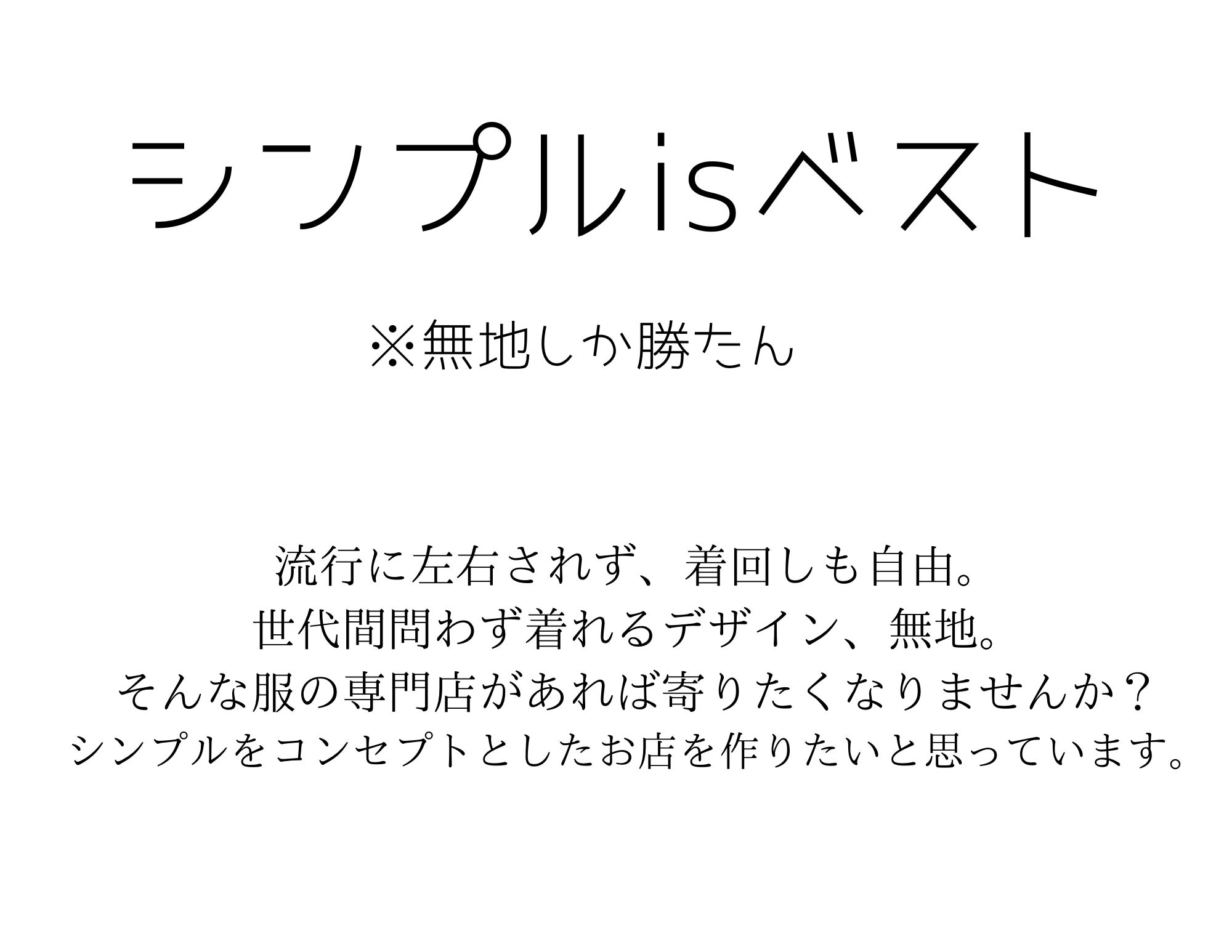 シンプルisベスト。それをモットーとした無地服専門店を出したいと思っています。