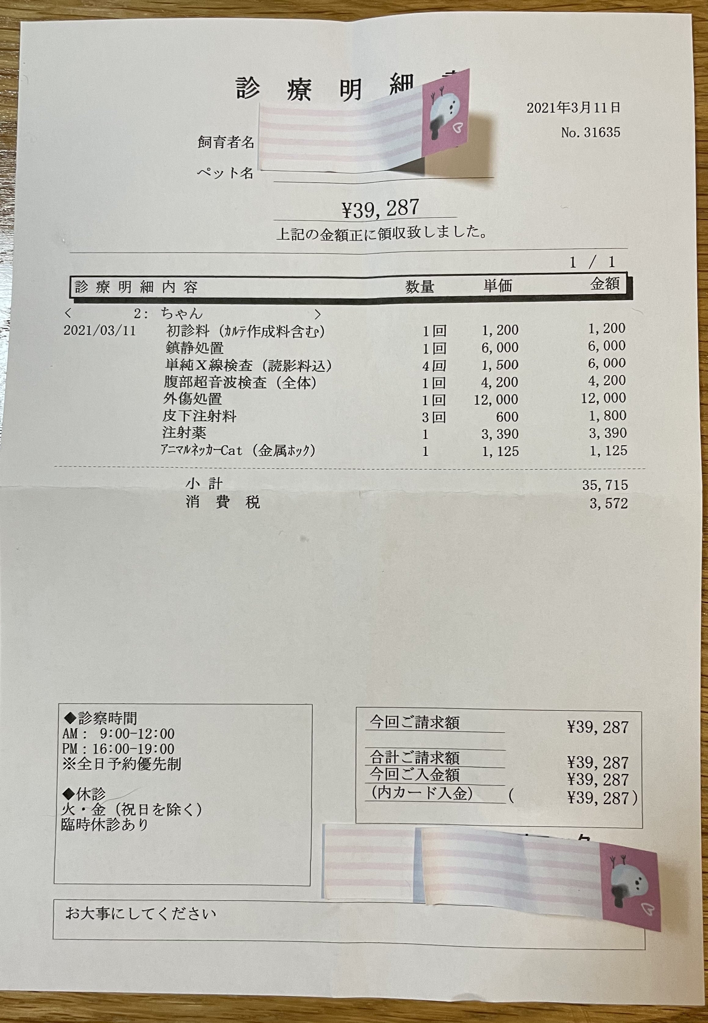 初期治療、鎮静処置、X線検査、超音波検査、外傷処置。。。¥35.715