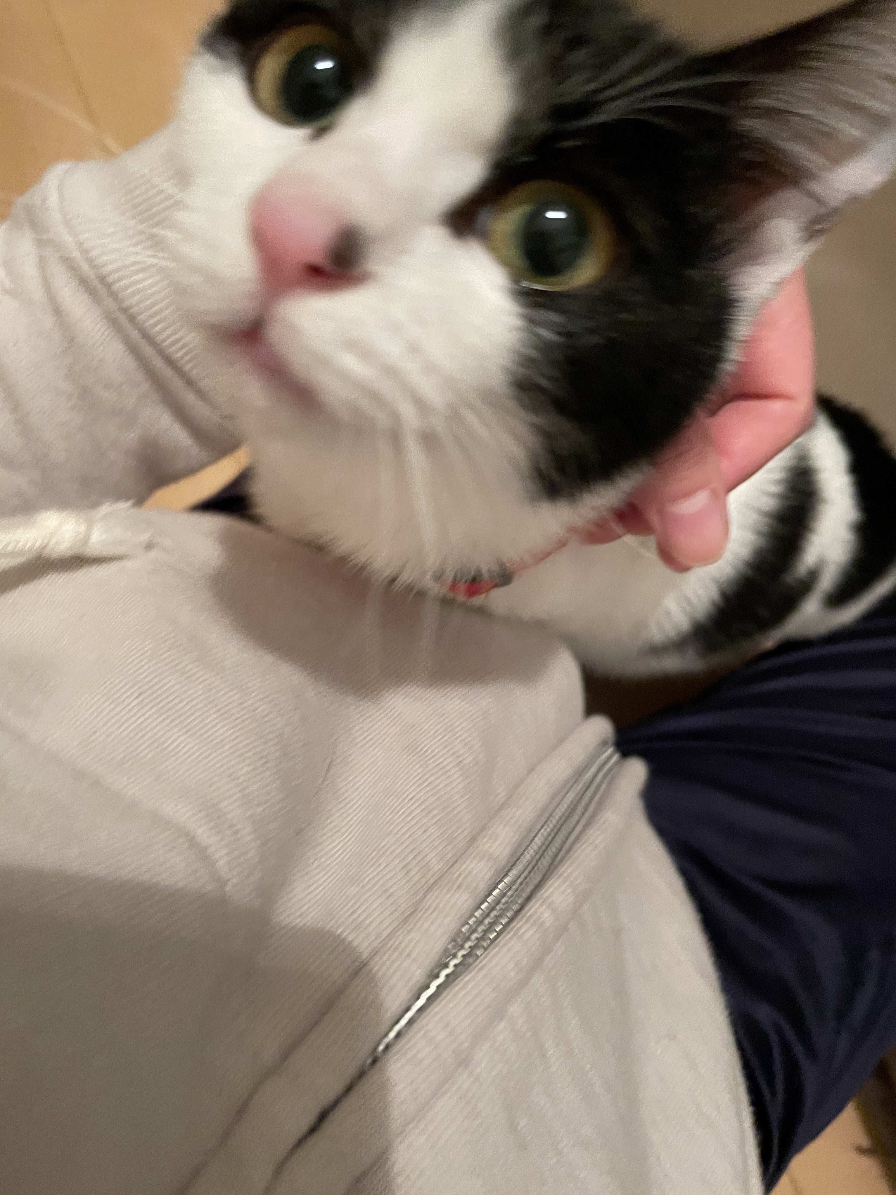 だいぶ部屋にも人にも慣れて、膝の上に乗ってきてスリスリもするようになりました。