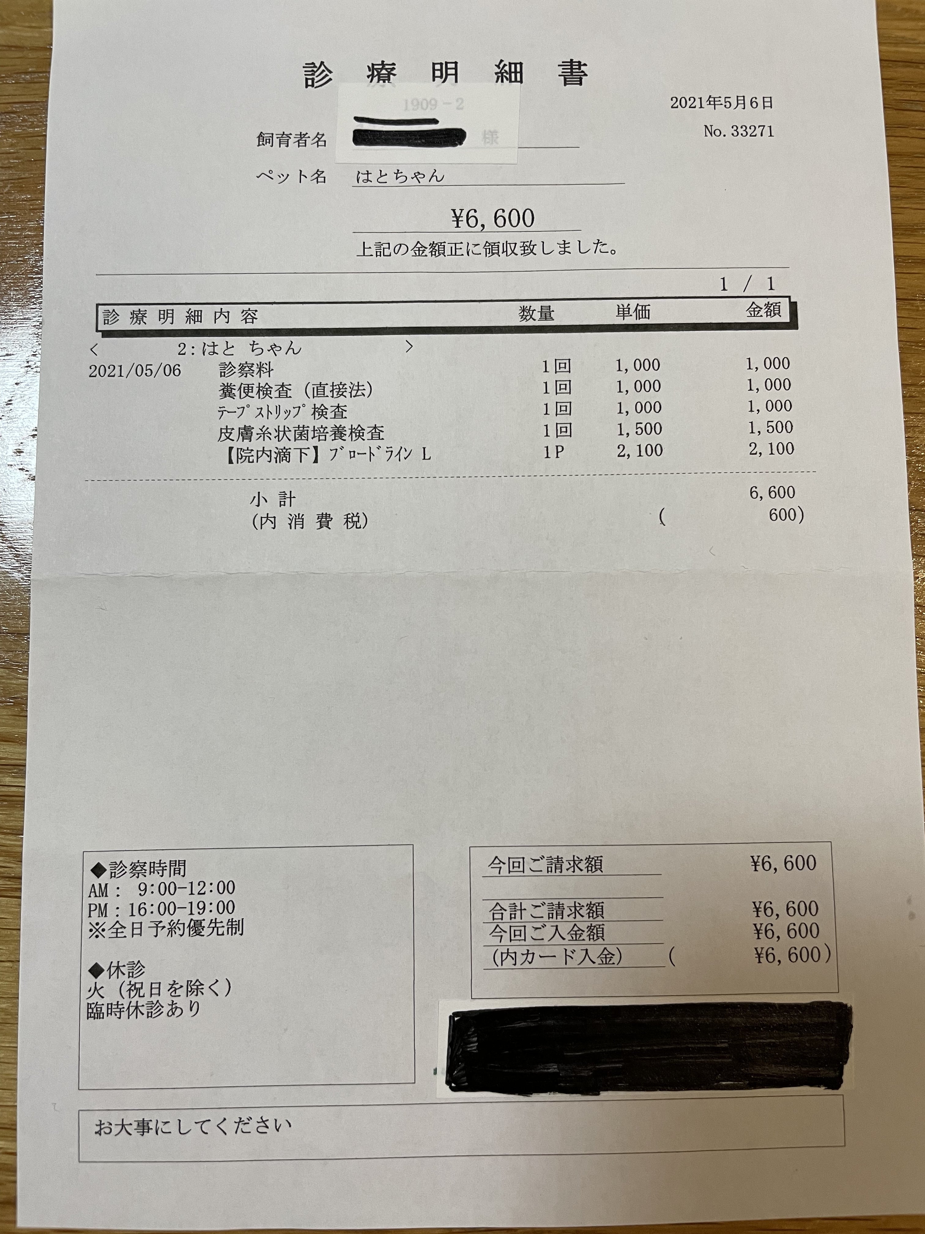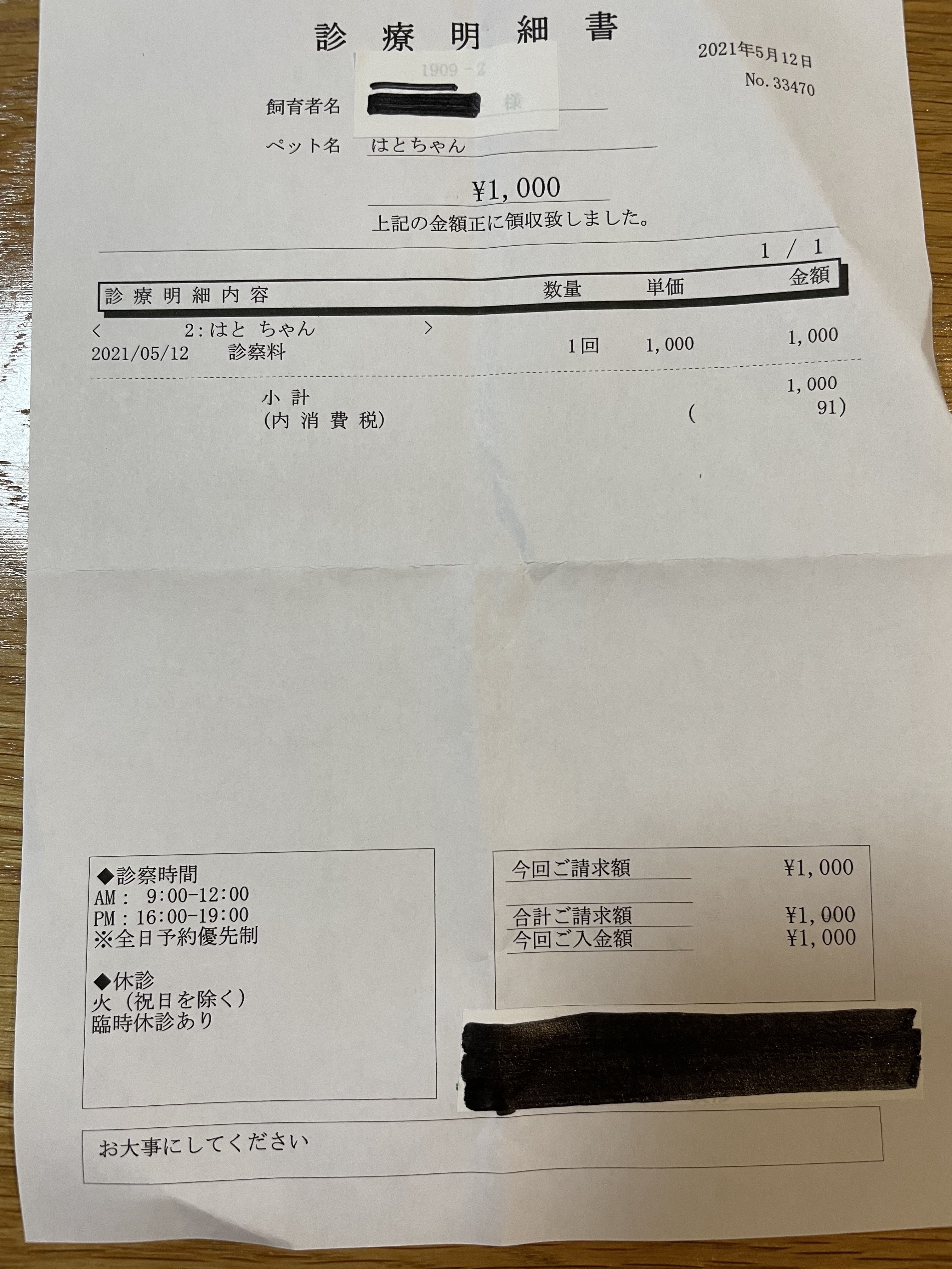 前回の受診明細書と出産後の明細書になります。