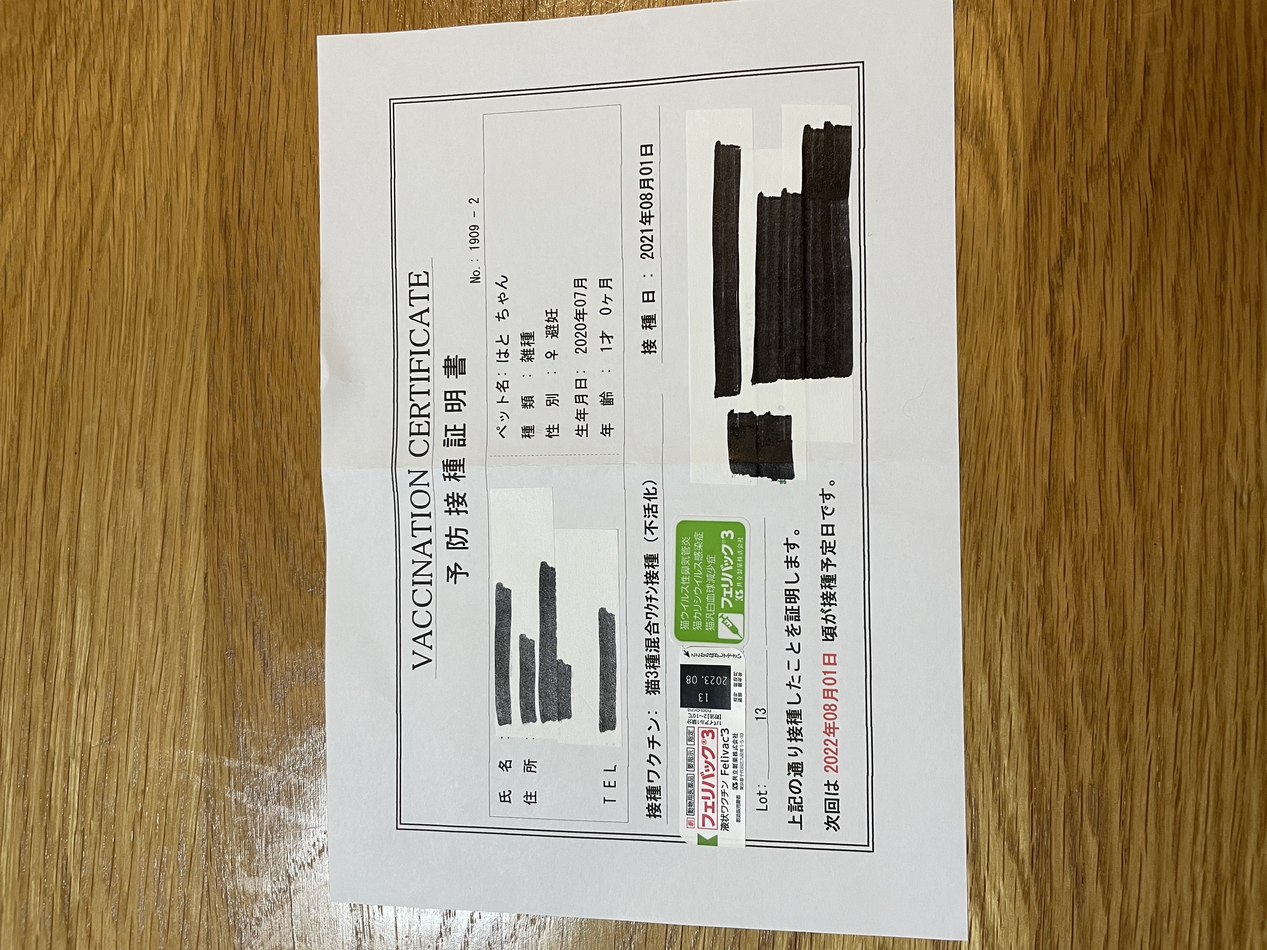 抜糸までの間に食欲も出たのでワクチン接種もすることができ、ようやくひと段落しました。