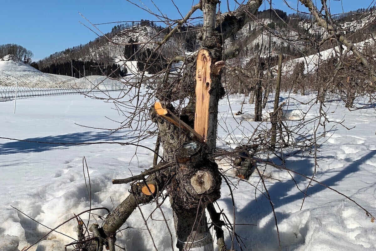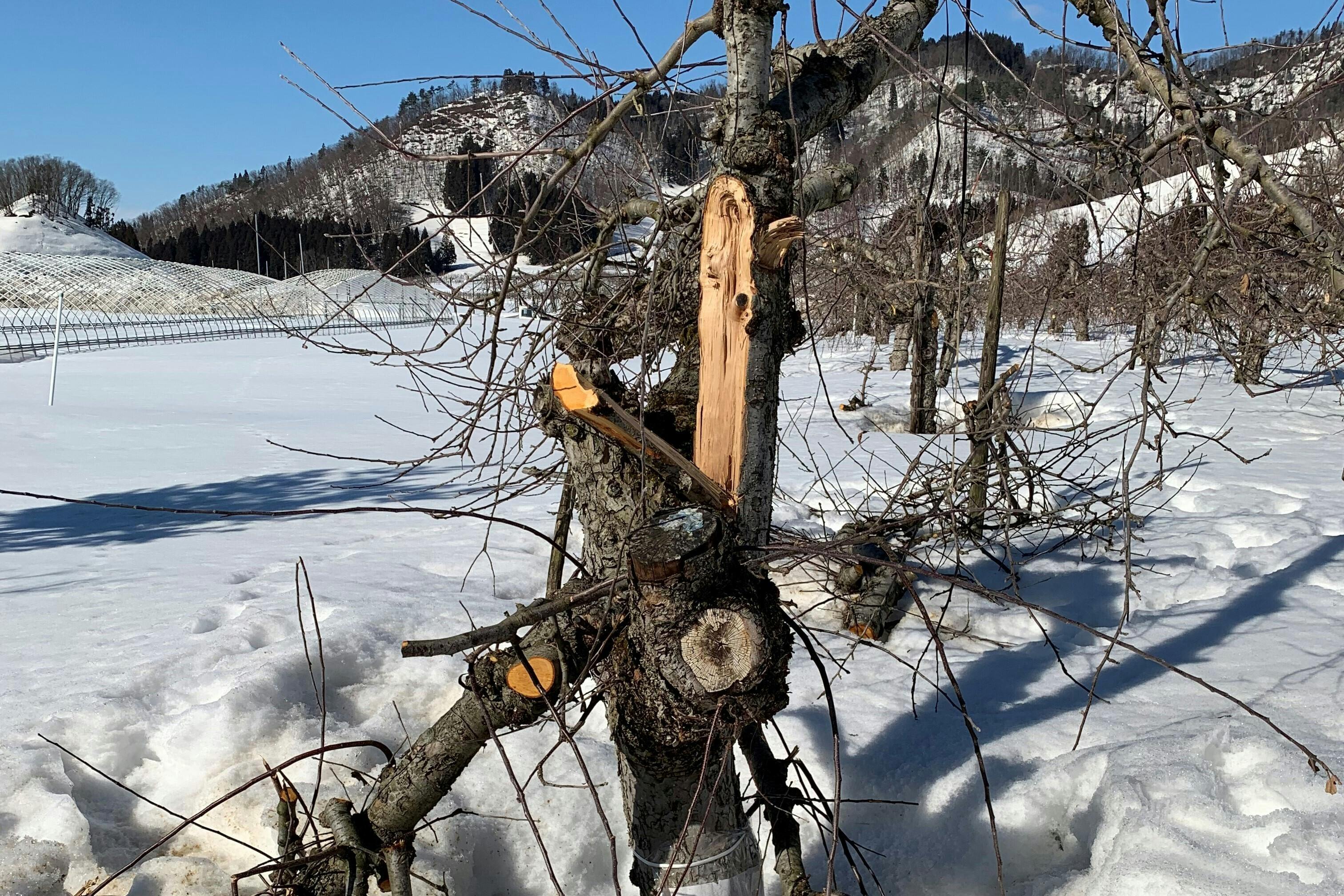 150年以上の歴史をもつ農園ではりんごの木の7割が折れてしまいました。