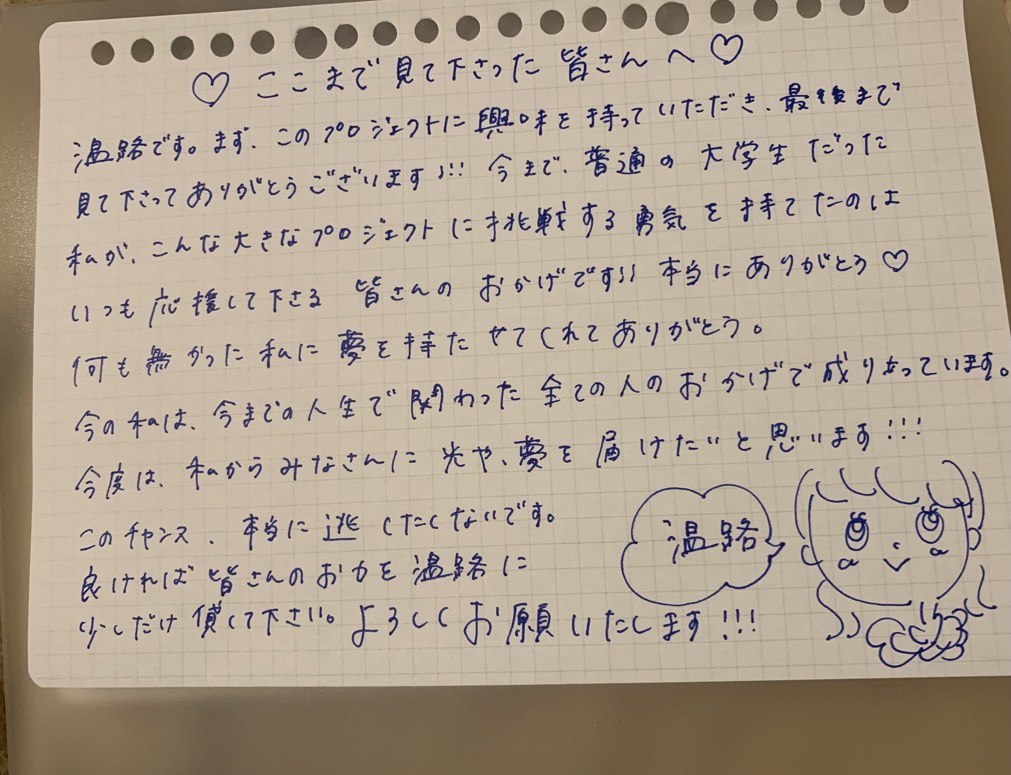 今、私が温路としてステージに立たせていただいていることは私1人の力や実力だけでなく私の事を愛してくれたり応援してくださる皆様に支えられて実現できています。