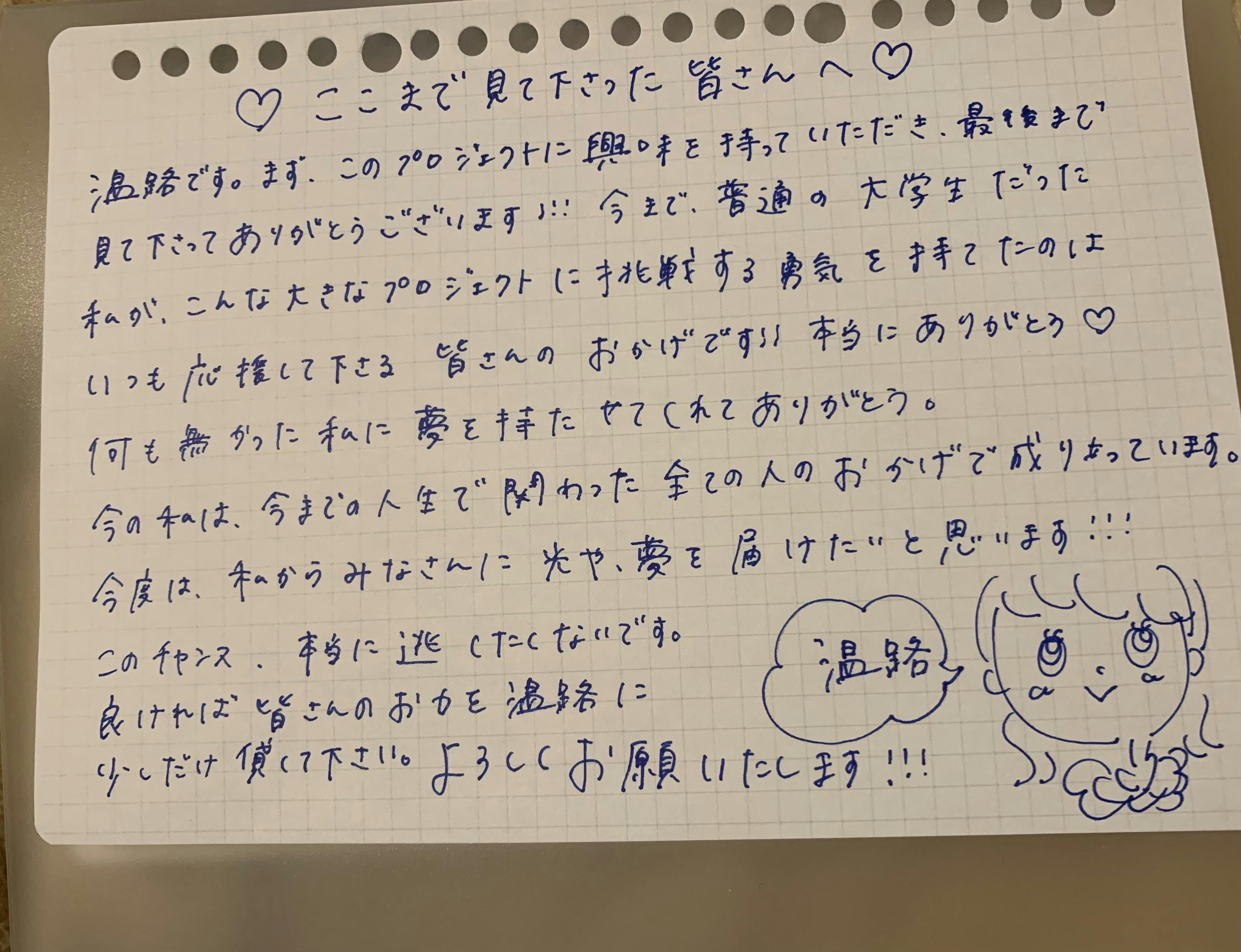 そこで私はいつも応援してくださる皆様のためにワンマンライブが出来るようなりたいと思いました!