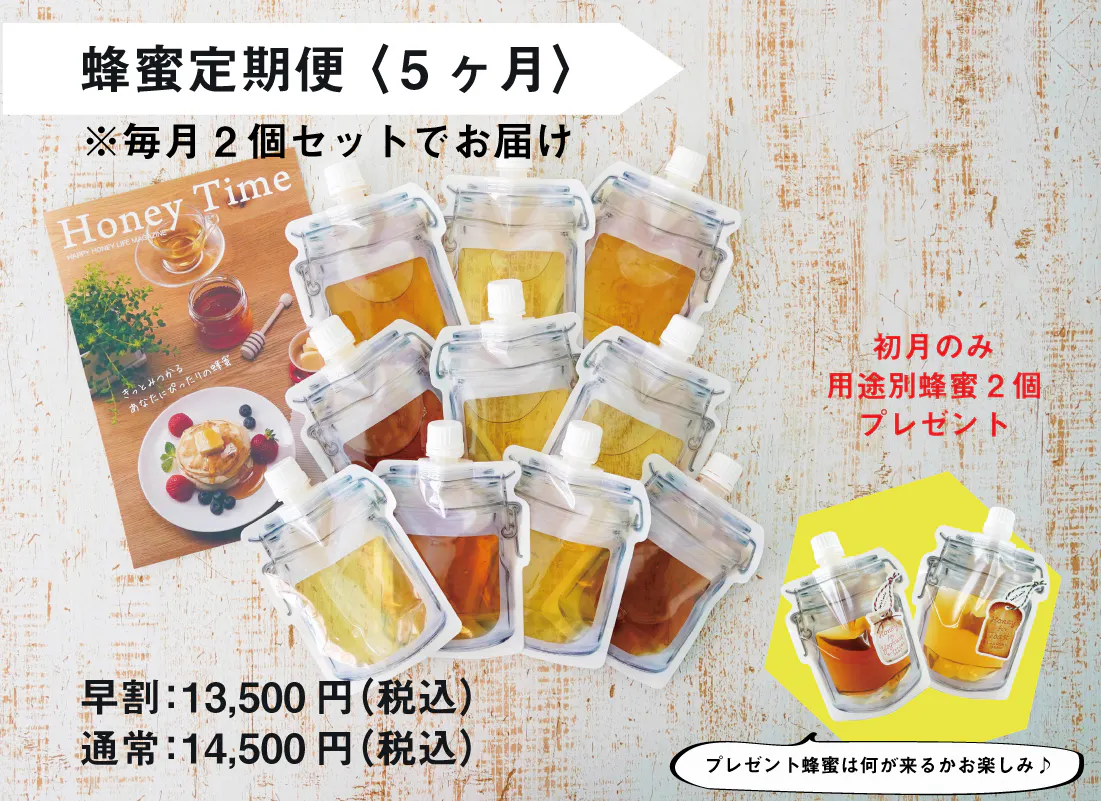 ■蜂蜜定期便<5ヵ月> 14,500円 限定数:20個