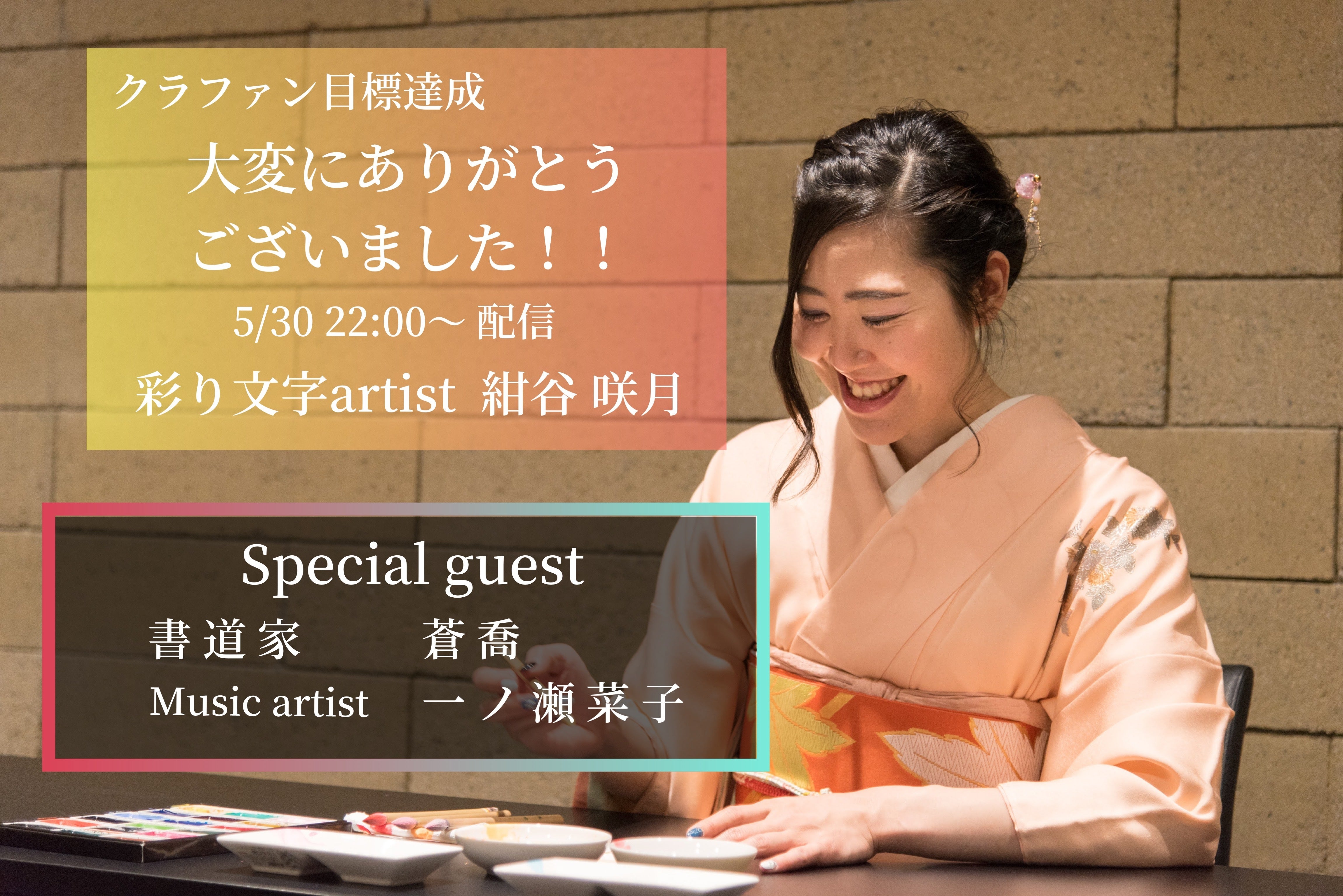 2021/05/29 07:50おはようございます!梅雨も中休みでしょうか?今日は布団を干そうと思います!紺谷です!さて!このクラウドファンディングも残すところあと2日となりました。5/30 23:59をもってこのプロジェクトは終了します。ご協力いただいた皆様、応援してくださった皆様本当にありがとうございました!感謝の気持ちを私の口から直接お伝えしたく、5/30 22:00〜 顔出しの!LIVEを!!ツイキャスにて行うこととしました!!そしてなんと!超スペシャルゲスト!!書道家 蒼喬さんMusic artist 一ノ瀬菜子さんが来てくださいます!蒼喬さんはゲーム作品「Fate」シリーズ『Fate/Grand Order』通称FGOの公式書家であられます!日本人史上初のNYカーネギーホールに作品を展示されたり、私が憧れる書道家さんです!!こんな風になりたいなー、、、とずっとTwitterを拝見していた書道家さんで、まさか自分を知ってもらい、私のために時間を作ってくださるなんて脳みそがバグりそうなほど夢の時間です!笑どのようにゲームの世界へ繋がったのか、きいてみましょう!!一ノ瀬菜子さんはNFTマーケットプレイス『nanakusa』公認ミュージックアーティストでもあられましてクリエイティブに音楽活動をされている、シンガーソングライターさんです!有難いことに今大変仲良くさせていただいていており(私菜子さんが5月に1番話した方かもしれない)、クリエイターとして生きていくための具体的なステップを教わったような。そして一緒に目指していきたい仲間でもあります。私が語るよりも、曲を聴いて欲しい。めちゃくちゃ素敵で何度も勇気をもらい、泣きました。そんなアツい話ができればなあ!と思っています!そんなお二人とも、このプロジェクトがあり目指せたからこそ、出会えたような気がします。それは日々応援してくださり、見守ってくださっている皆様がいるからこそ、頑張れたと思います。今回のプロジェクトで感じたこと、伝えたいこと、ここではまとまらない程たくさんあります。まだまだ私の挑戦は続きますが、その一区切りとして、生の声で感謝を伝えられたらと思いますので、お時間許す方は是非遊びに来てください!ーーーーーーーーーーーーーーーーーーーーーーーーー配信を見る方法!web版・シンプルに見たい!当日5/30 21:50頃 紺谷咲月公式LINEアカウントにてURLを送信しますのでそちらからご覧いただけます。(このプロジェクトの紺谷咲月プロフィールから公式LINEの登録ができます)同時にTwitter、Instagramストーリーにも配信URLを載せます※インスタグラムからはリンクから飛ぶことができません・コメントもしたい!当日5/30 21:50以降 ツイキャスビュワー検索→アカウント登録→紺谷咲月(shoGetsu420)で検索→配信ページアプリ・ツイキャスビュワー(緑色のアプリ)インストール→当日5/30 21:50以降 紺谷咲月(shoGetsu420)で検索→配信ページ※アプリ内アカウント登録しておくとコメントもできます もっと見る