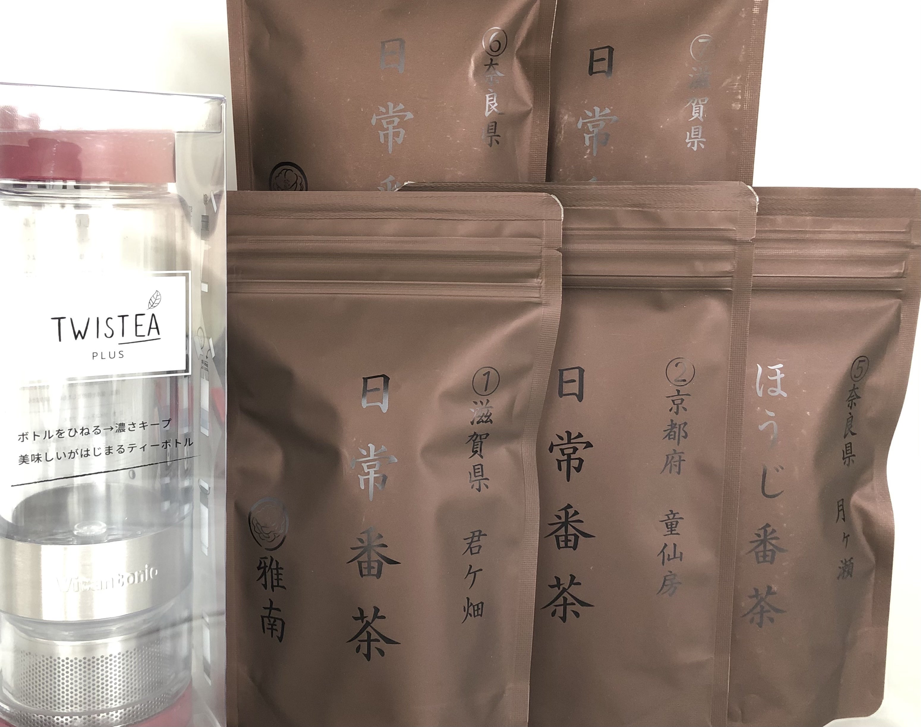 茶こし付き水筒「ツイスティー」と茶葉のセット。
