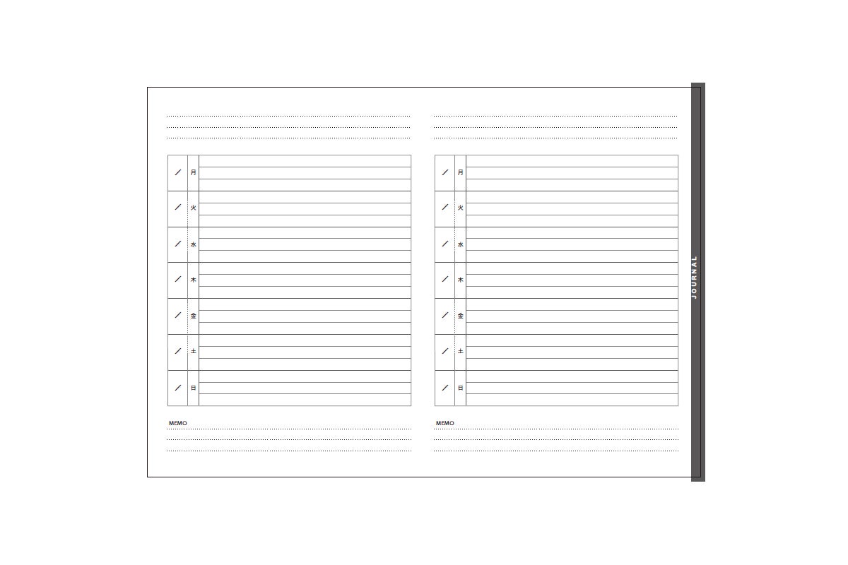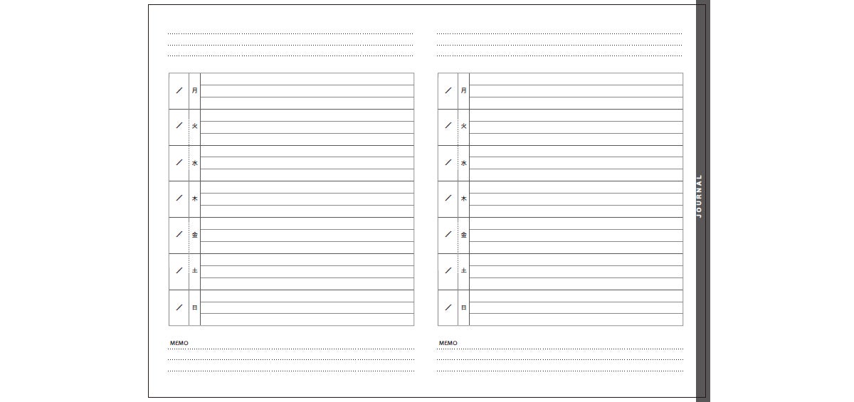 3行日記の欄は1ページ1週間(月曜~日曜)で、好きな日にスタートができるよう日付は入っていません。何かの事情で書けない日があったとしても、次の月曜日から、または翌週の書けなかった日と同じ曜日から再スタートしやすくデザインされています。続けることよりも、再開できることに重きをおいて欲しいなと思っています。