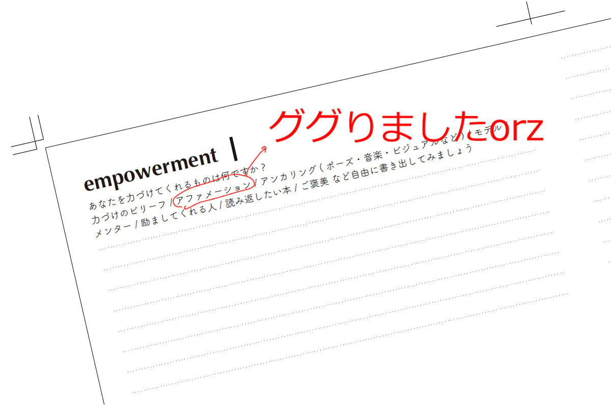 その気づきがあったのは、私の友人のひとりに素の原稿を見てもらったところ、上の写真のように、「アファメーション」や「導出」といった言葉がよくわからないという、フィードバックをいただくことができたからです。